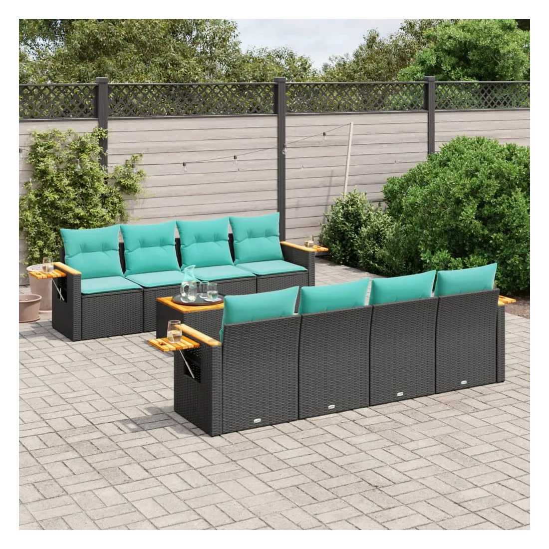 vidaXLCet ensemble de canapés de jardin est le complément parfait de votre arrière-cour, terrasse ou patio, offrant un espace confortable et accueillant pour discuter avec la famille et les amis ou simplement se détendre et profiter de l'extérieur. Matériau durable : la résine tressée, également connue sous le nom de poly rotin, est un matériau synthétique solide et nécessitant peu d'entretien qui ressemble au rotin naturel. Il est léger, facile à nettoyer et couramment utilisé pour les meubles d'extérieur en raison de sa durabilité et de ses propriétés de résistance aux intempéries.Dessus stable et facile à nettoyer : cette table de jardin a un dessus en bois d'acacia robuste, durable et facile à nettoyer avec un chiffon humide.Table d'appoint pratique : ce mobilier d'extérieur comprend une table d'appoint pliable avec un ressort à gaz sur les accoudoirs, offrant un endroit pratique pour garder vos essentiels à portée de main.Housse amovible et lavable : ces coussins de siège sont dotés de housses amovibles pour un lavage et un entretien faciles.Conception modulaire : cet ensemble de meubles d'extérieur a une conception modulaire, ce qui le rend complètement flexible et facile à déplacer, afin que vous puissiez créer un agencement de meubles d'extérieur personnalisé. Bon à savoir :Pour que vos meubles d'extérieur restent beaux, nous vous recommandons de les protéger avec une housse imperméable.