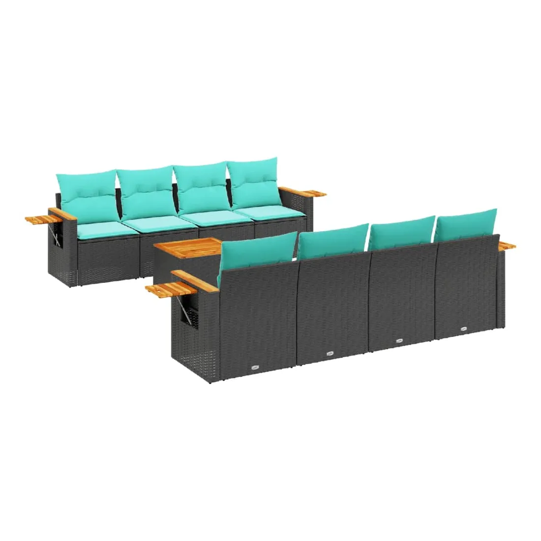 Salon de jardin 9 pcs avec coussins noir résine tressée
