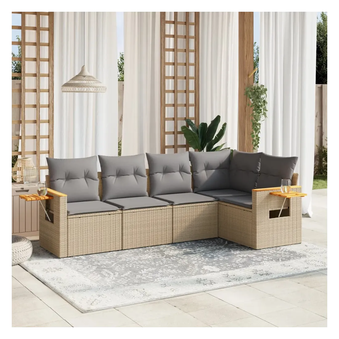 Salon de jardin avec coussins 5 pcs beige résine tressée