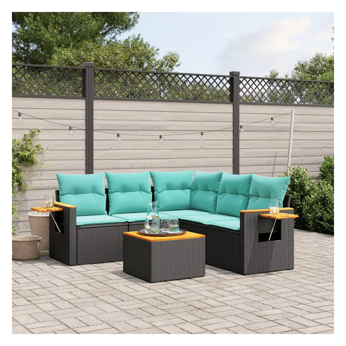 Cet ensemble de canapés de jardin est le complément parfait de votre arrière-cour, terrasse ou patio, offrant un espace confortable et accueillant pour discuter avec la famille et les amis ou simplement se détendre et profiter de l'extérieur. Matériau durable : la résine tressée, également connue sous le nom de poly rotin, est un matériau synthétique solide et nécessitant peu d'entretien qui ressemble au rotin naturel. Il est léger, facile à nettoyer et couramment utilisé pour les meubles d'extérieur en raison de sa durabilité et de ses propriétés de résistance aux intempéries.Dessus stable et facile à nettoyer : cette table de jardin a un dessus en bois d'acacia robuste, durable et facile à nettoyer avec un chiffon humide.Table d'appoint pratique : ce mobilier d'extérieur comprend une table d'appoint pliable avec un ressort à gaz sur les accoudoirs, offrant un endroit pratique pour garder vos essentiels à portée de main.Housse amovible et lavable : ces coussins de siège sont dotés de housses amovibles pour un lavage et un entretien faciles.Conception modulaire : cet ensemble de meubles d'extérieur a une conception modulaire, ce qui le rend complètement flexible et facile à déplacer, afin que vous puissiez créer un agencement de meubles d'extérieur personnalisé. Bon à savoir :Pour que vos meubles d'extérieur restent beaux, nous vous recommandons de les protéger avec une housse imperméable.