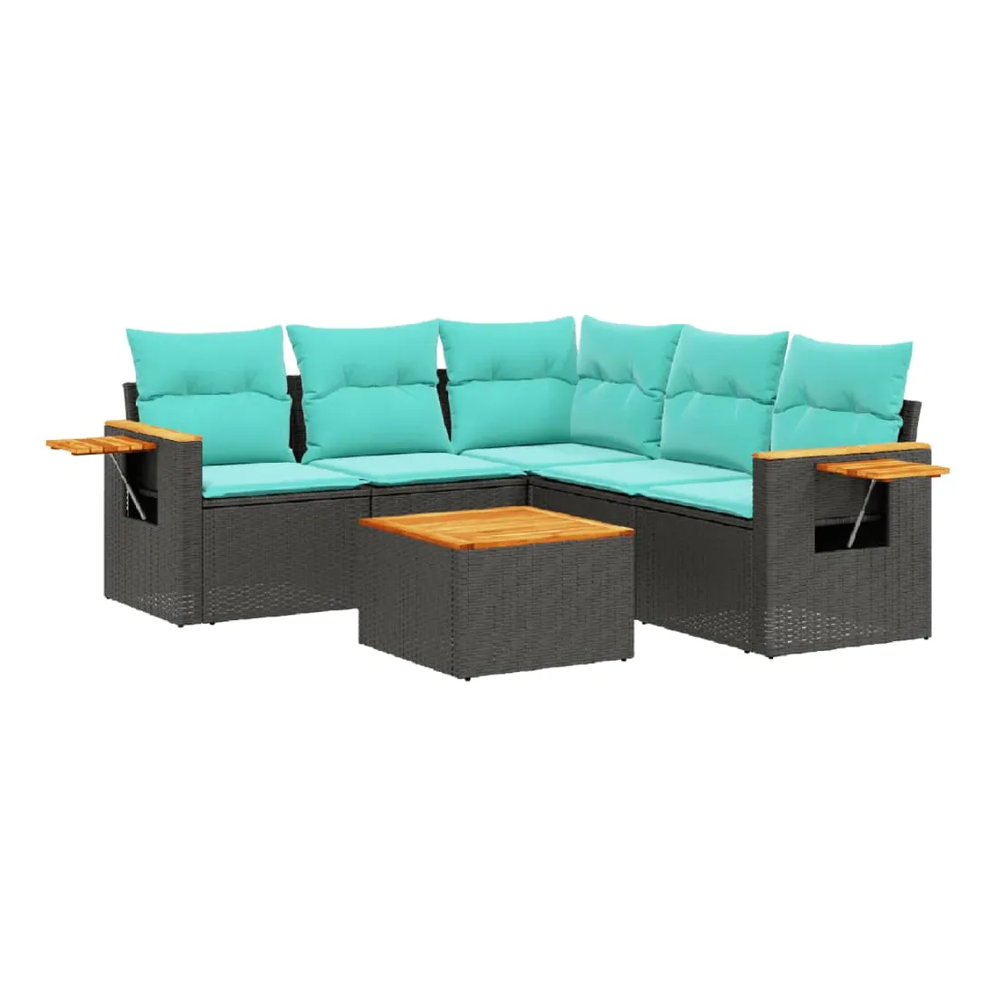 Salon de jardin 6 pcs avec coussins noir résine tressée