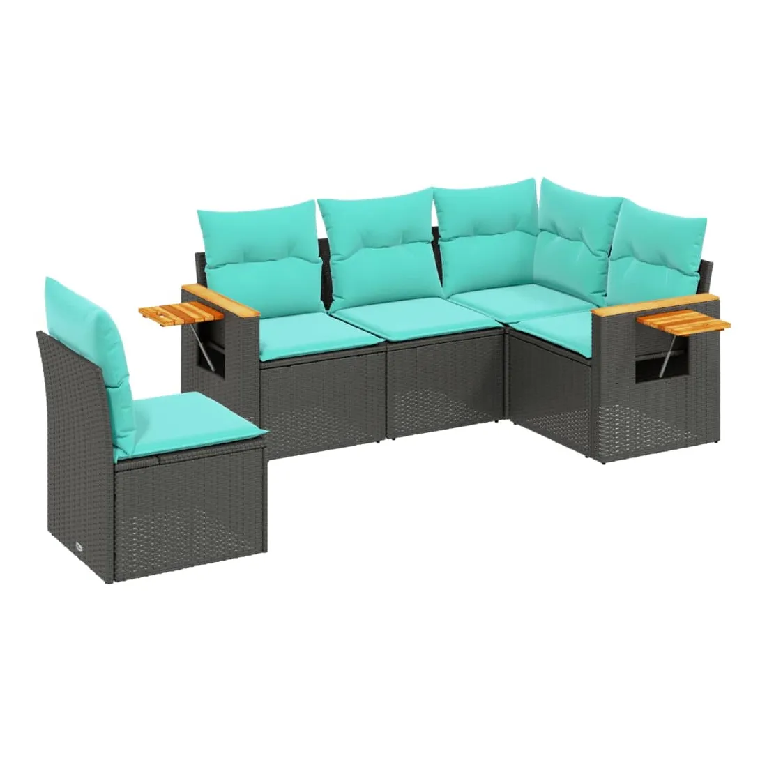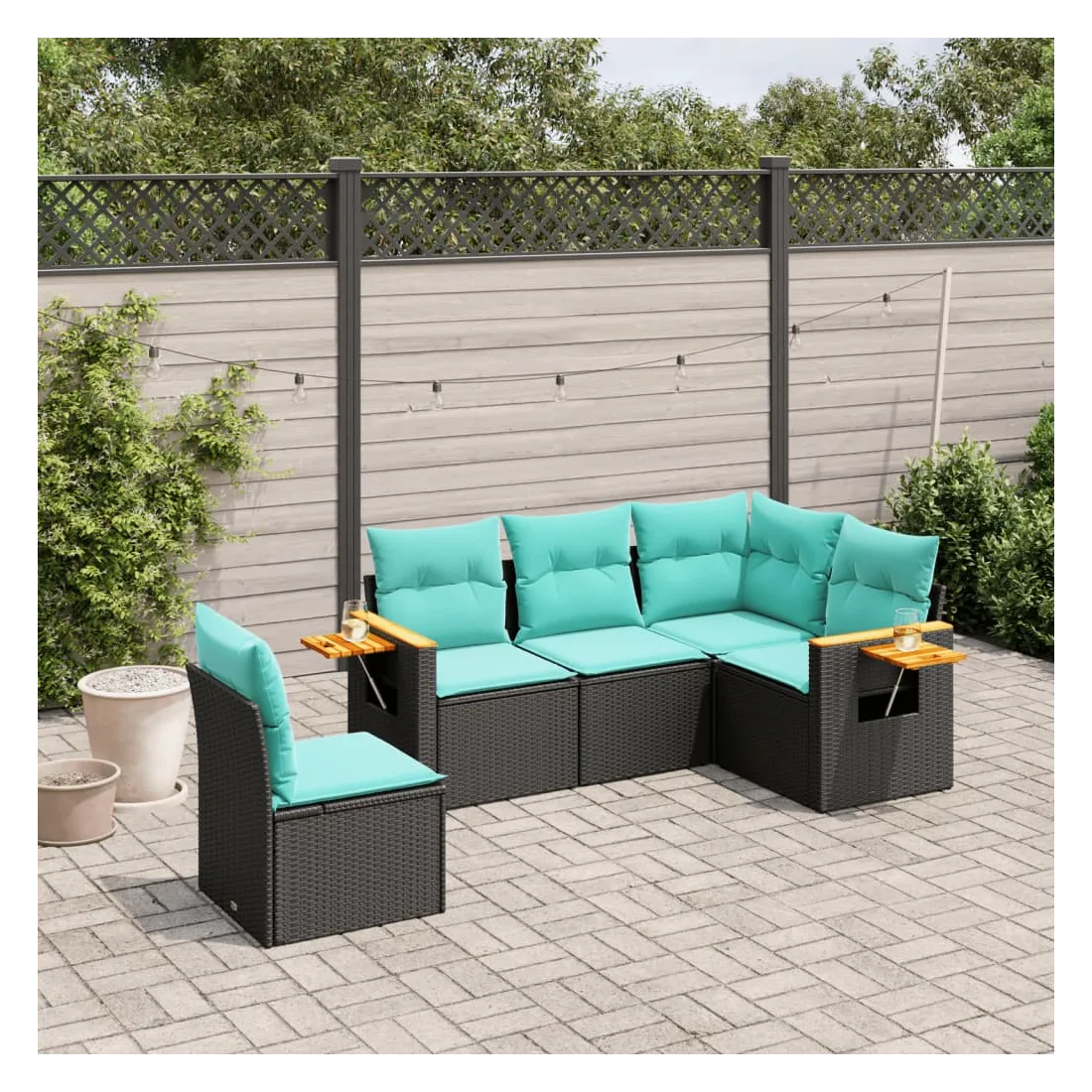 Salon de jardin 5 pcs avec coussins noir résine tressée