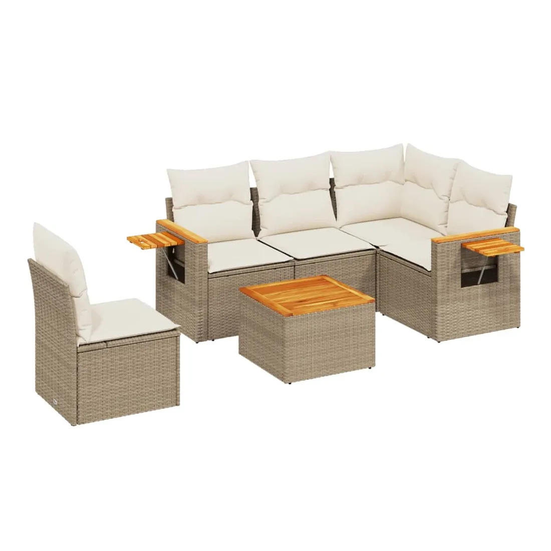 Cet ensemble de canapés de jardin est le complément parfait de votre arrière-cour, terrasse ou patio, offrant un espace confortable et accueillant pour discuter avec la famille et les amis ou simplement se détendre et profiter de l'extérieur. Matériau durable : la résine tressée, également connue sous le nom de poly rotin, est un matériau synthétique solide et nécessitant peu d'entretien qui ressemble au rotin naturel. Il est léger, facile à nettoyer et couramment utilisé pour les meubles d'extérieur en raison de sa durabilité et de ses propriétés de résistance aux intempéries.Dessus stable et facile à nettoyer : cette table de jardin a un dessus en bois d'acacia robuste, durable et facile à nettoyer avec un chiffon humide.Table d'appoint pratique : ce mobilier d'extérieur comprend une table d'appoint pliable avec un ressort à gaz sur les accoudoirs, offrant un endroit pratique pour garder vos essentiels à portée de main.Housse amovible et lavable : ces coussins de siège sont dotés de housses amovibles pour un lavage et un entretien faciles.Conception modulaire : cet ensemble de meubles d'extérieur a une conception modulaire, ce qui le rend complètement flexible et facile à déplacer, afin que vous puissiez créer un agencement de meubles d'extérieur personnalisé. Bon à savoir :Pour que vos meubles d'extérieur restent beaux, nous vous recommandons de les protéger avec une housse imperméable.