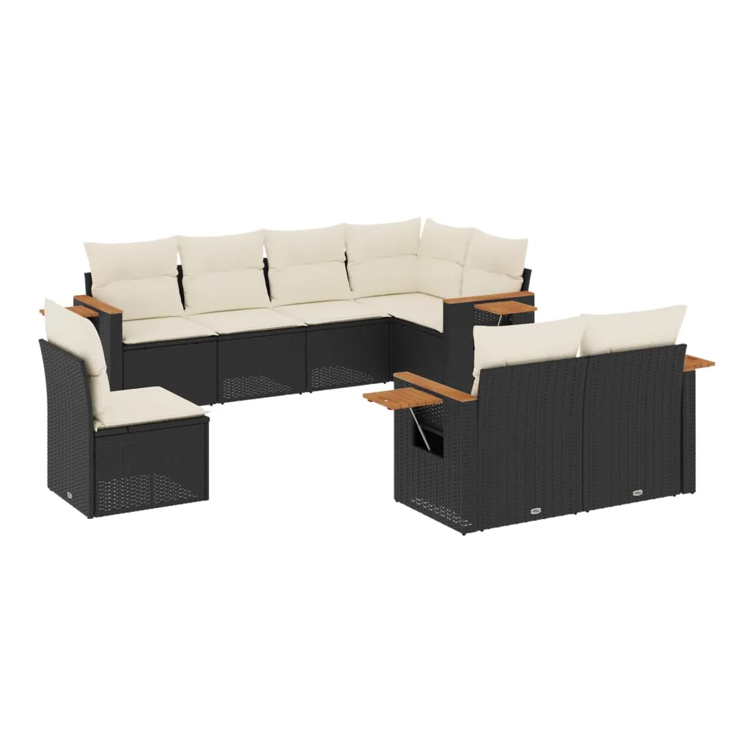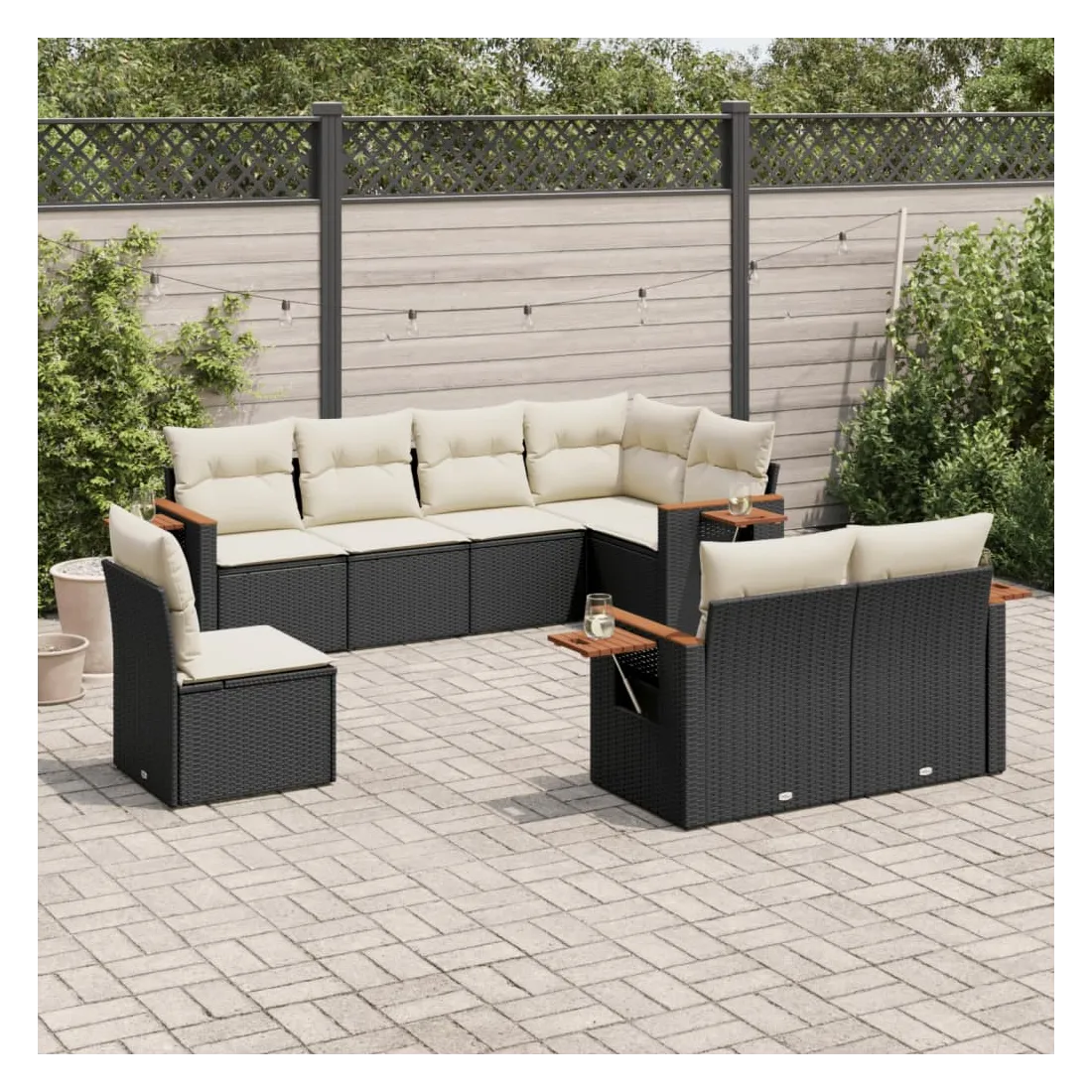 Salon de jardin 8 pcs avec coussins noir résine tressée