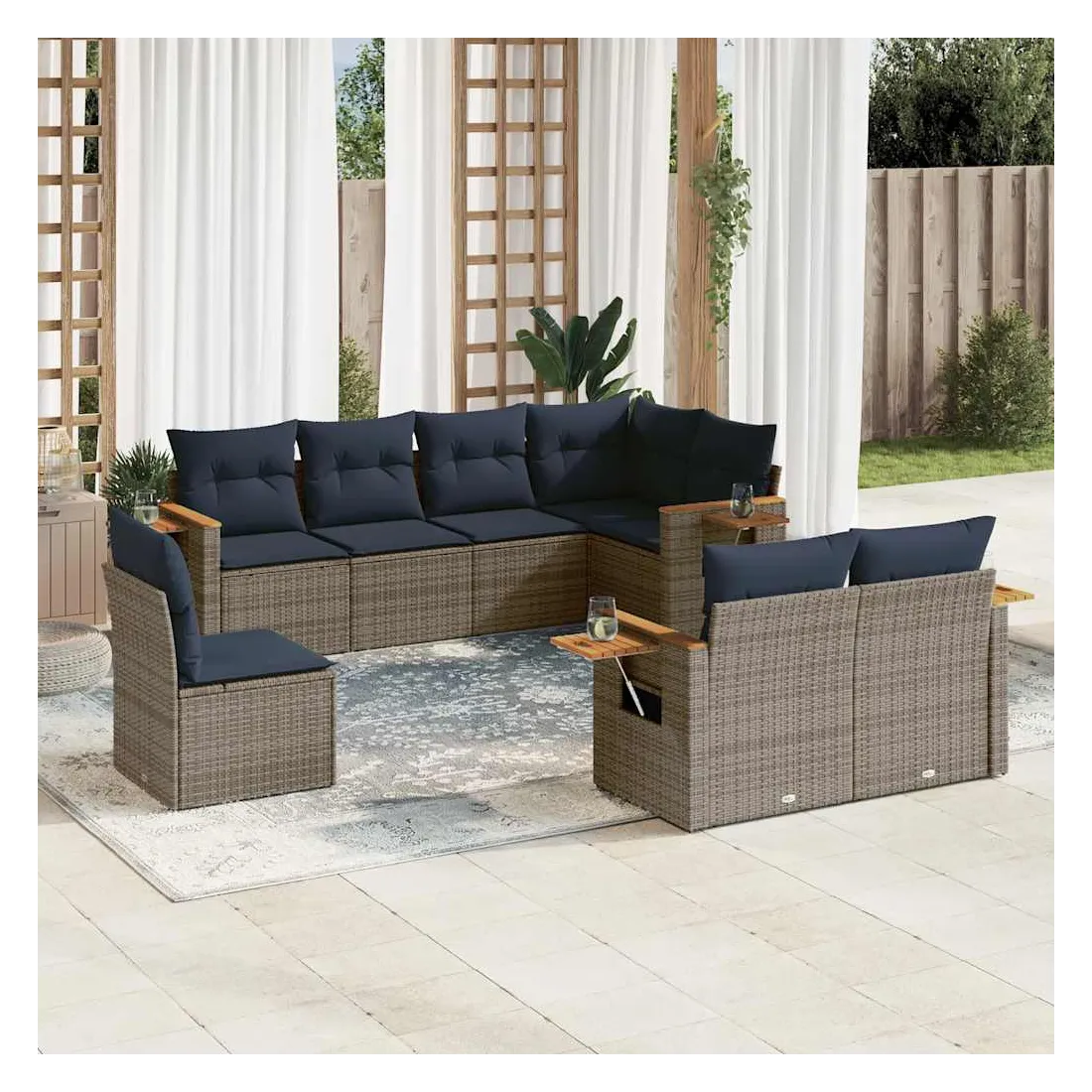 Cet ensemble de canapés de jardin est le complément parfait de votre arrière-cour, terrasse ou patio, offrant un espace confortable et accueillant pour discuter avec la famille et les amis ou simplement se détendre et profiter de l'extérieur. Matériau durable : la résine tressée, également connue sous le nom de poly rotin, est un matériau synthétique solide et nécessitant peu d'entretien qui ressemble au rotin naturel. Il est léger, facile à nettoyer et couramment utilisé pour les meubles d'extérieur en raison de sa durabilité et de ses propriétés de résistance aux intempéries.Table d'appoint pratique : ce mobilier d'extérieur comprend une table d'appoint pliable avec un ressort à gaz sur les accoudoirs, offrant un endroit pratique pour garder vos essentiels à portée de main.Housse amovible et lavable : ces coussins de siège sont dotés de housses amovibles pour un lavage et un entretien faciles.Conception modulaire : cet ensemble de meubles d'extérieur a une conception modulaire, ce qui le rend complètement flexible et facile à déplacer, afin que vous puissiez créer un agencement de meubles d'extérieur personnalisé. Bon à savoir :Pour que vos meubles d'extérieur restent beaux, nous vous recommandons de les protéger avec une housse imperméable.