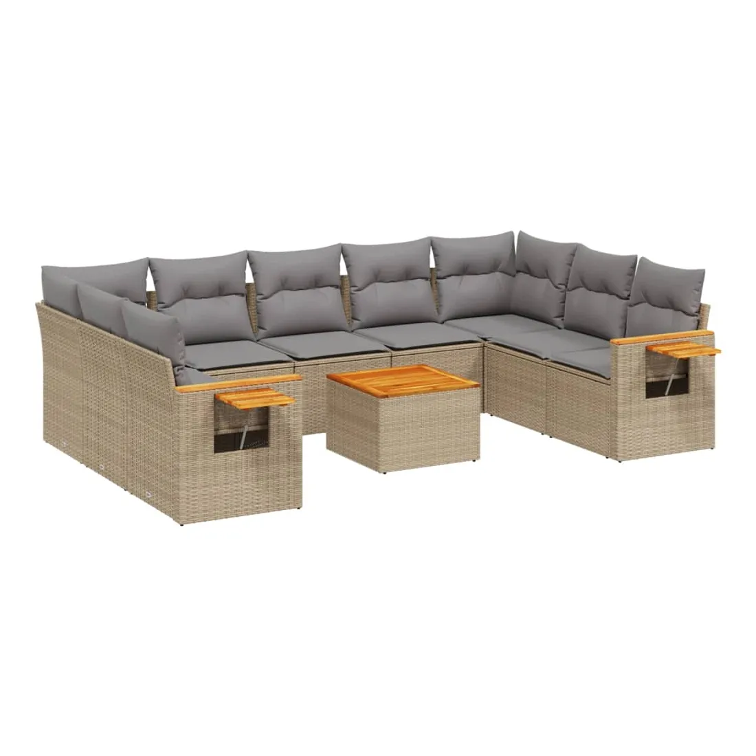 Cet ensemble de canapés de jardin est le complément parfait de votre arrière-cour, terrasse ou patio, offrant un espace confortable et accueillant pour discuter avec la famille et les amis ou simplement se détendre et profiter de l'extérieur. Matériau durable : la résine tressée, également connue sous le nom de poly rotin, est un matériau synthétique solide et nécessitant peu d'entretien qui ressemble au rotin naturel. Il est léger, facile à nettoyer et couramment utilisé pour les meubles d'extérieur en raison de sa durabilité et de ses propriétés de résistance aux intempéries.Dessus stable et facile à nettoyer : cette table de jardin a un dessus en bois d'acacia robuste, durable et facile à nettoyer avec un chiffon humide.Table d'appoint pratique : ce mobilier d'extérieur comprend une table d'appoint pliable avec un ressort à gaz sur les accoudoirs, offrant un endroit pratique pour garder vos essentiels à portée de main.Housse amovible et lavable : ces coussins de siège sont dotés de housses amovibles pour un lavage et un entretien faciles.Conception modulaire : cet ensemble de meubles d'extérieur a une conception modulaire, ce qui le rend complètement flexible et facile à déplacer, afin que vous puissiez créer un agencement de meubles d'extérieur personnalisé. Bon à savoir :Pour que vos meubles d'extérieur restent beaux, nous vous recommandons de les protéger avec une housse imperméable.