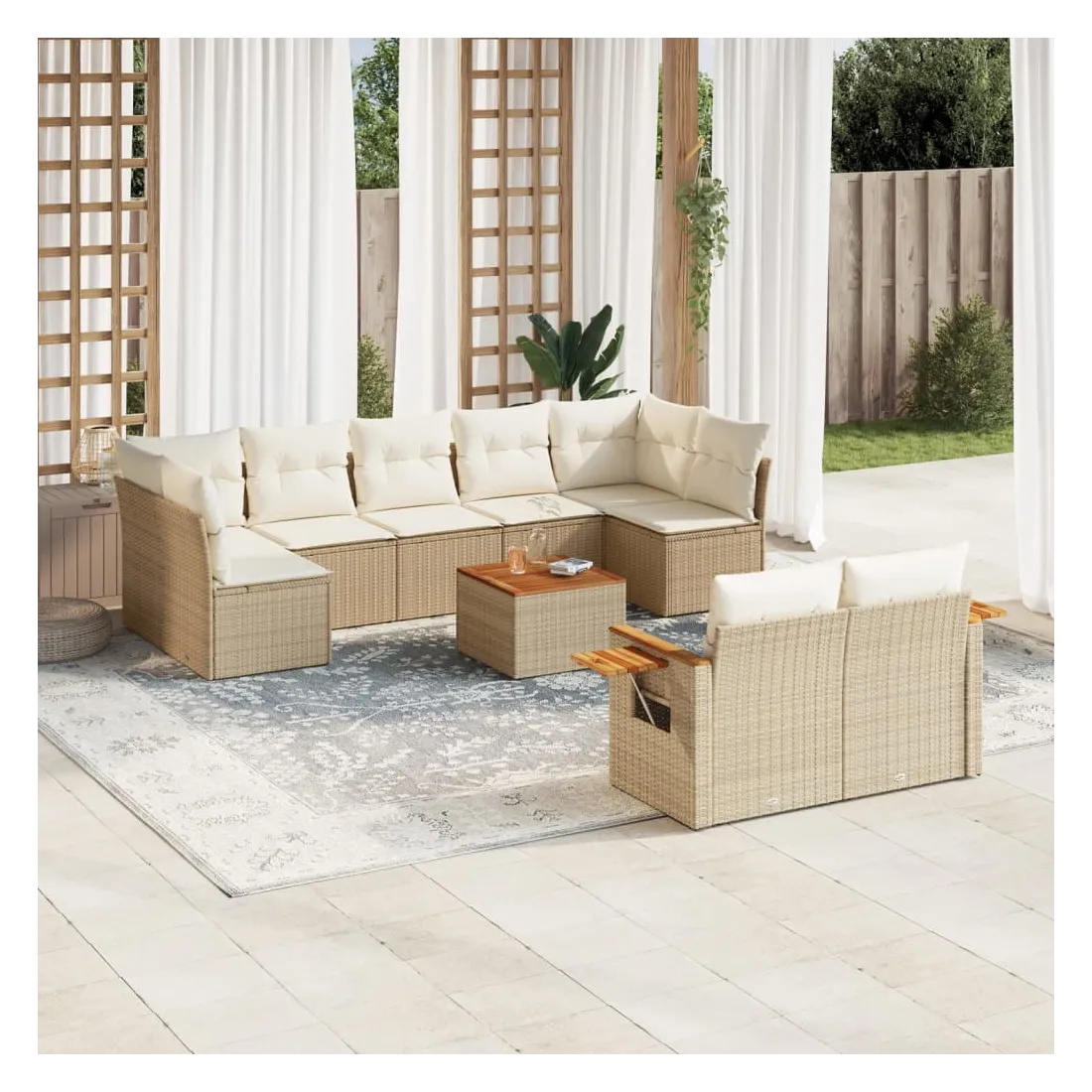 Salon de jardin avec coussins 10 pcs beige résine tressée