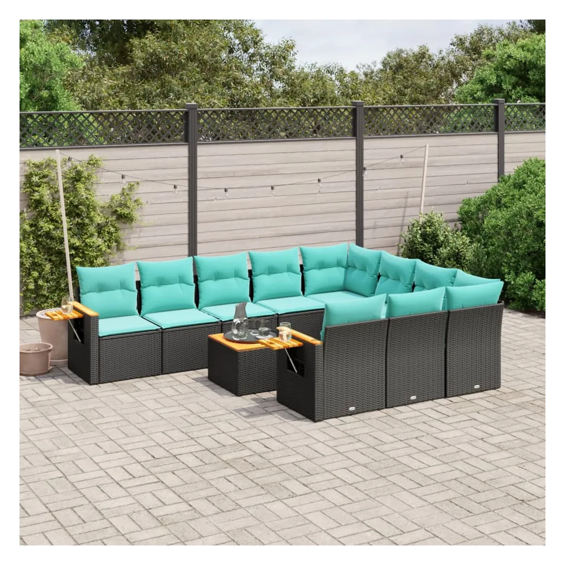 Salon de jardin 11 pcs avec coussins noir résine tressée