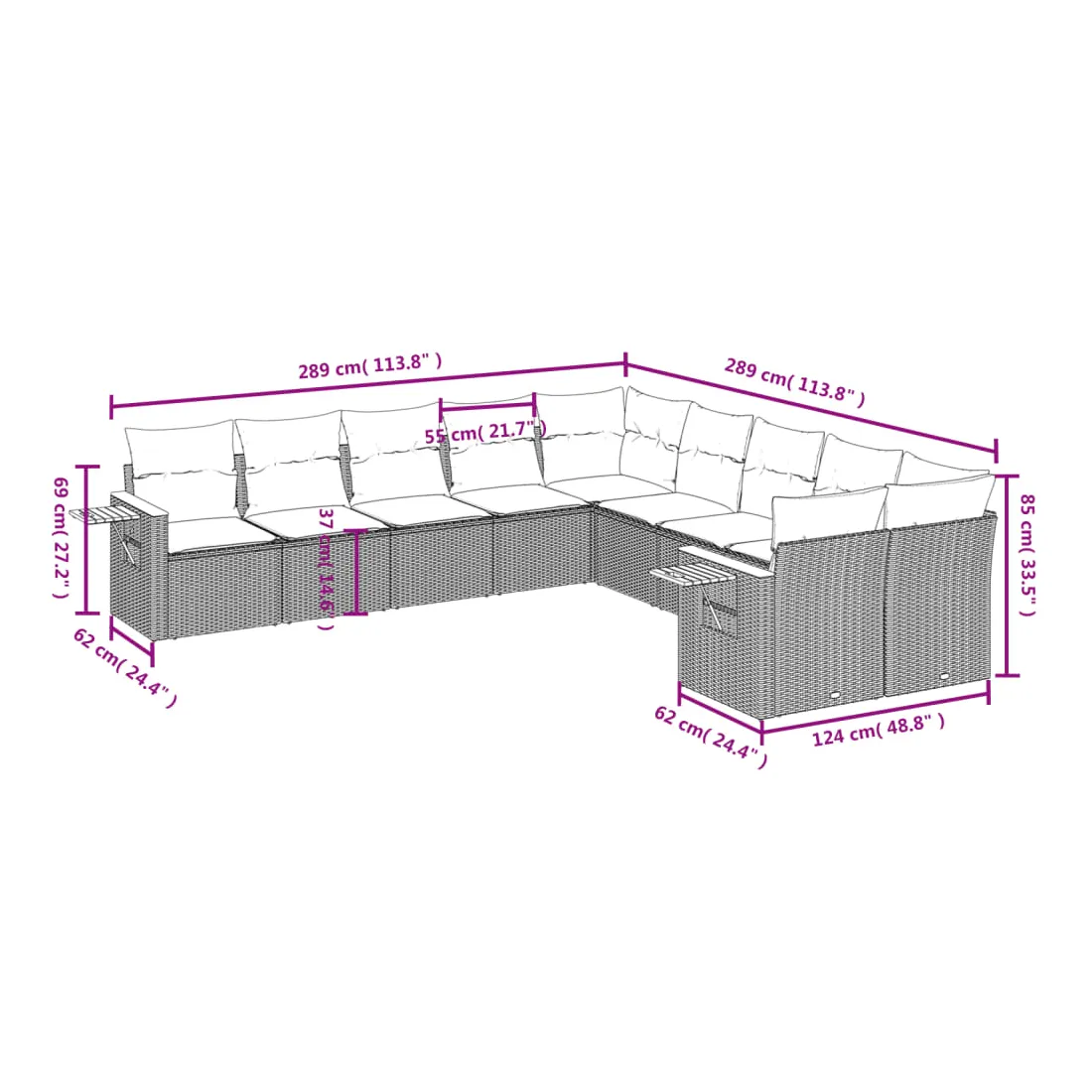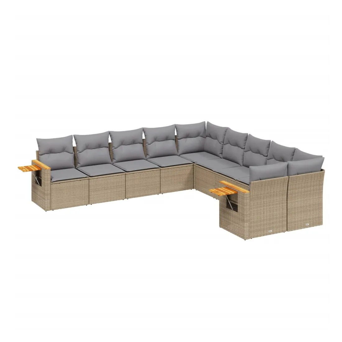 Salon de jardin avec coussins 10 pcs beige résine tressée