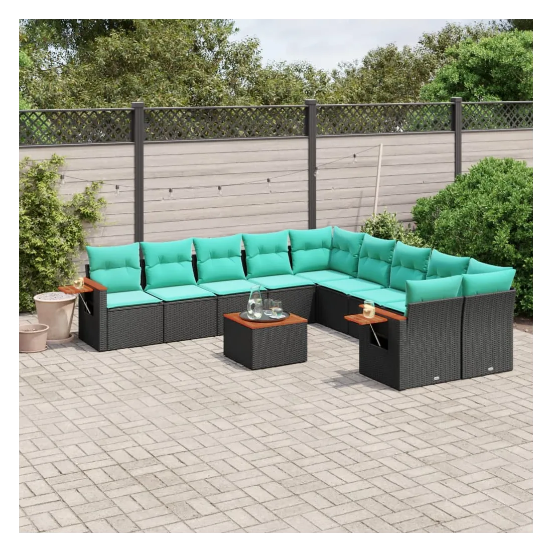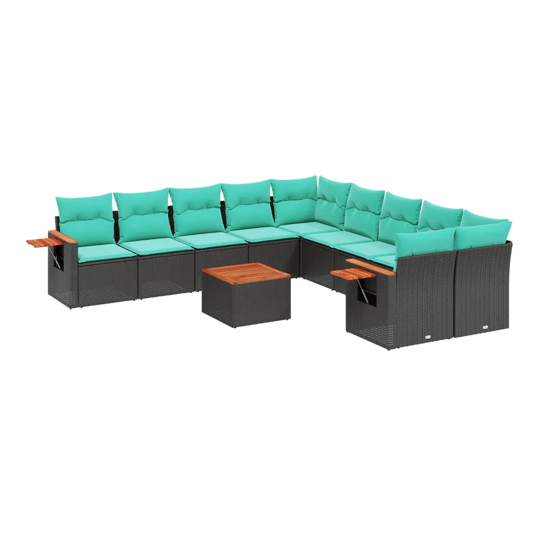 Salon de jardin 11 pcs avec coussins noir résine tressée
