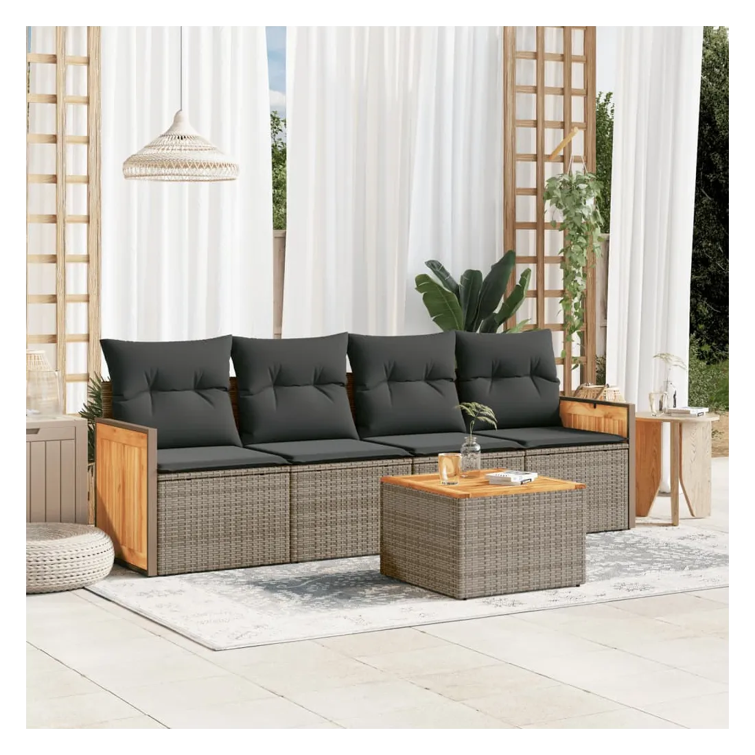 - Matériau : rotin PE, bois d'acacia massif avec finition à l'huile