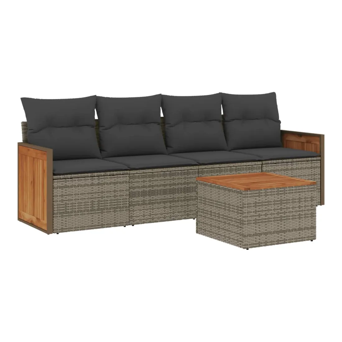 Cet ensemble de canapés de jardin est le complément parfait de votre arrière-cour, terrasse ou patio, offrant un espace confortable et accueillant pour discuter avec la famille et les amis ou simplement se détendre et profiter de l'extérieur. Matériau durable : la résine tressée, également connue sous le nom de poly rotin, est un matériau synthétique solide et nécessitant peu d'entretien qui ressemble au rotin naturel. Il est léger, facile à nettoyer et couramment utilisé pour les meubles d'extérieur en raison de sa durabilité et de ses propriétés de résistance aux intempéries.Expérience d'assise confortable : ce mobilier d'extérieur, doté de coussins épais, offre une expérience d'assise confortable.Dessus stable et facile à nettoyer : cette table de jardin a un dessus en bois d'acacia robuste, durable et facile à nettoyer avec un chiffon humide.Housse amovible et lavable : ces coussins de siège sont dotés de housses amovibles pour un lavage et un entretien faciles.Conception modulaire : cet ensemble de meubles d'extérieur a une conception modulaire, ce qui le rend complètement flexible et facile à déplacer, afin que vous puissiez créer un agencement de meubles d'extérieur personnalisé. Bon à savoir :Pour que vos meubles d'extérieur restent beaux, nous vous recommandons de les protéger avec une housse imperméable.