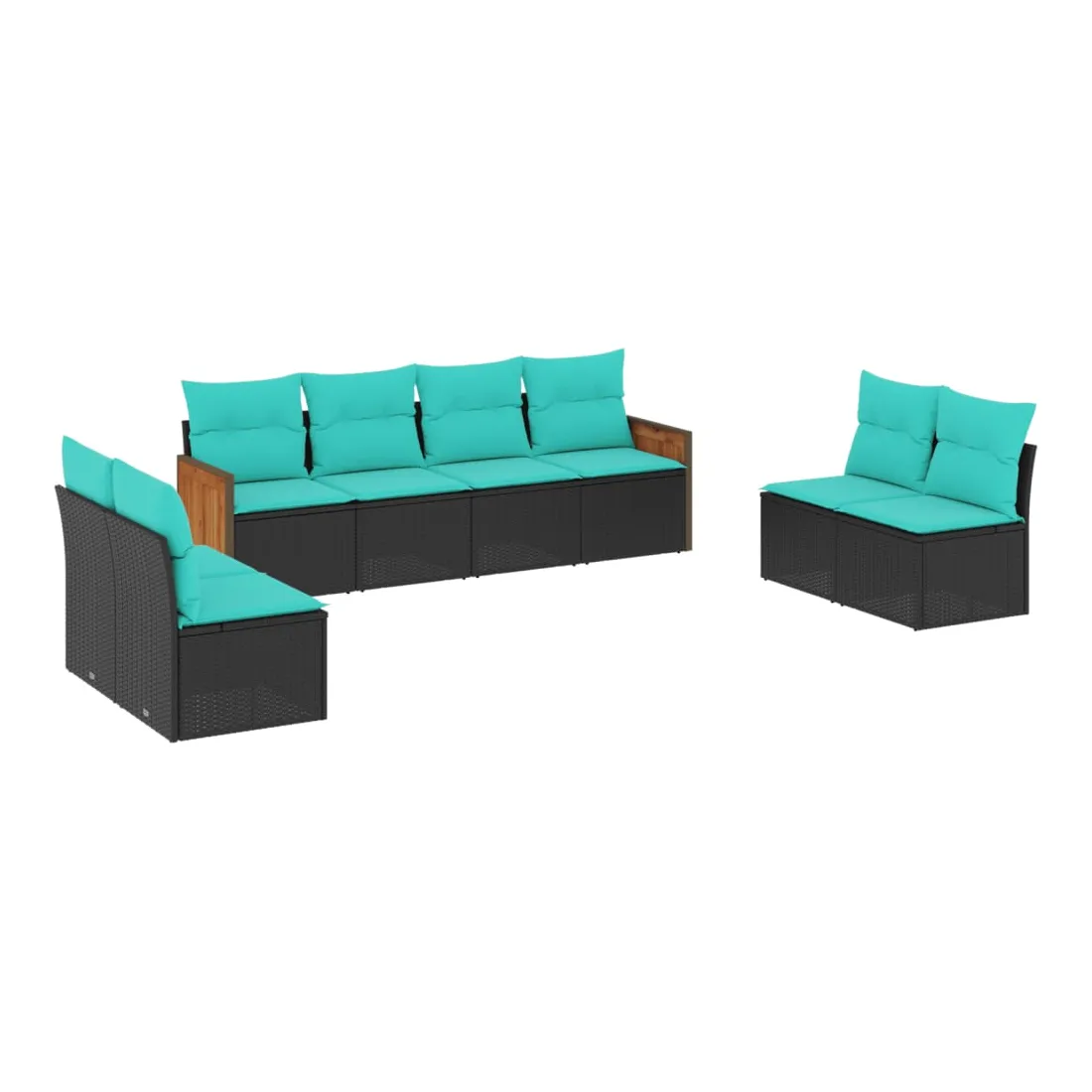 Cet ensemble de canapés de jardin est le complément parfait de votre arrière-cour, terrasse ou patio, offrant un espace confortable et accueillant pour discuter avec la famille et les amis ou simplement se détendre et profiter de l'extérieur. Matériau durable : la résine tressée, également connue sous le nom de poly rotin, est un matériau synthétique solide et nécessitant peu d'entretien qui ressemble au rotin naturel. Elle est légère, facile à nettoyer et couramment utilisée pour les meubles d'extérieur en raison de sa durabilité et de ses propriétés de résistance aux intempéries.Expérience d'assise confortable : ce mobilier d'extérieur, doté de coussins épais, offre une expérience d'assise confortable.Housse amovible et lavable : ces coussins de siège sont dotés de housses amovibles pour un lavage et un entretien faciles.Conception modulaire : cet ensemble de meubles d'extérieur a une conception modulaire, ce qui le rend complètement flexible et facile à déplacer, afin que vous puissiez créer un agencement de meubles d'extérieur personnalisé. Bon à savoir :Pour que vos meubles d'extérieur restent beaux, nous vous recommandons de les protéger avec une housse imperméable.