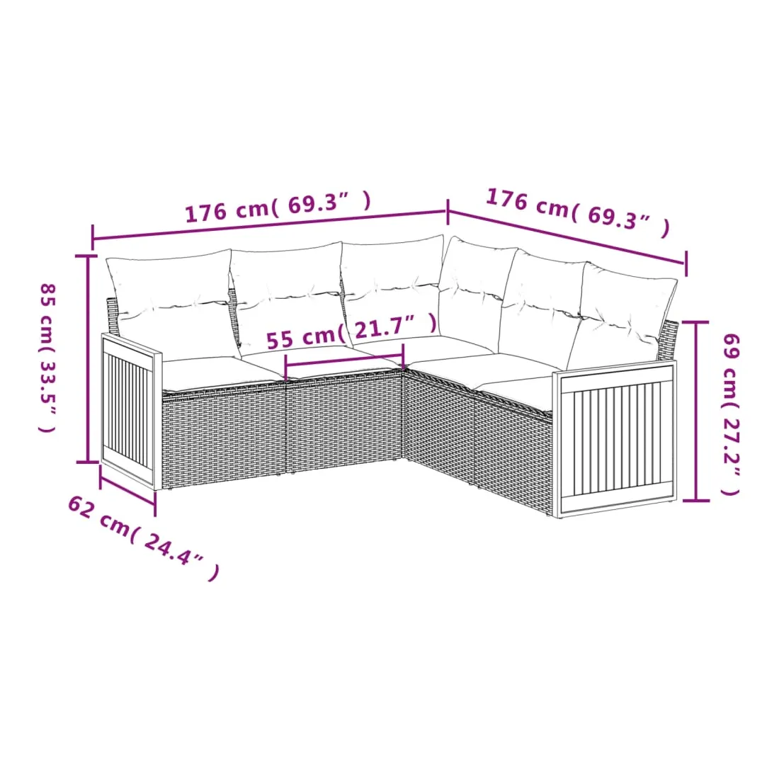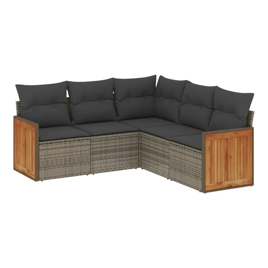 Salon de jardin 5 pcs avec coussins gris résine tressée