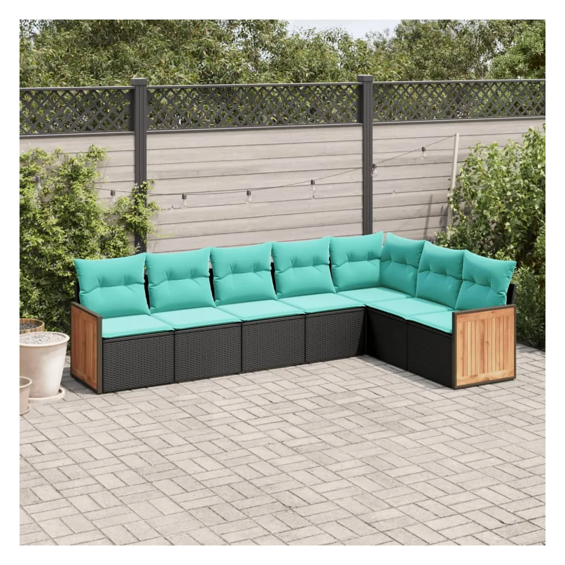 Cet ensemble de canapés de jardin est le complément parfait de votre arrière-cour, terrasse ou patio, offrant un espace confortable et accueillant pour discuter avec la famille et les amis ou simplement se détendre et profiter de l'extérieur. Matériau durable : la résine tressée, également connue sous le nom de poly rotin, est un matériau synthétique solide et nécessitant peu d'entretien qui ressemble au rotin naturel. Elle est légère, facile à nettoyer et couramment utilisée pour les meubles d'extérieur en raison de sa durabilité et de ses propriétés de résistance aux intempéries.Expérience d'assise confortable : ce mobilier d'extérieur, doté de coussins épais, offre une expérience d'assise confortable.Housse amovible et lavable : ces coussins de siège sont dotés de housses amovibles pour un lavage et un entretien faciles.Conception modulaire : cet ensemble de meubles d'extérieur a une conception modulaire, ce qui le rend complètement flexible et facile à déplacer, afin que vous puissiez créer un agencement de meubles d'extérieur personnalisé. Bon à savoir :Pour que vos meubles d'extérieur restent beaux, nous vous recommandons de les protéger avec une housse imperméable.