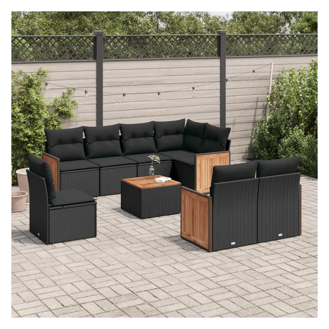 Cet ensemble de canapés de jardin est le complément parfait de votre arrière-cour, terrasse ou patio, offrant un espace confortable et accueillant pour discuter avec la famille et les amis ou simplement se détendre et profiter de l'extérieur. Matériau durable : la résine tressée, également connue sous le nom de poly rotin, est un matériau synthétique solide et nécessitant peu d'entretien qui ressemble au rotin naturel. Il est léger, facile à nettoyer et couramment utilisé pour les meubles d'extérieur en raison de sa durabilité et de ses propriétés de résistance aux intempéries.Expérience d'assise confortable : ce mobilier d'extérieur, doté de coussins épais, offre une expérience d'assise confortable.Dessus stable et facile à nettoyer : cette table de jardin a un dessus en bois d'acacia robuste, durable et facile à nettoyer avec un chiffon humide.Housse amovible et lavable : ces coussins de siège sont dotés de housses amovibles pour un lavage et un entretien faciles.Conception modulaire : cet ensemble de meubles d'extérieur a une conception modulaire, ce qui le rend complètement flexible et facile à déplacer, afin que vous puissiez créer un agencement de meubles d'extérieur personnalisé. Bon à savoir :Pour que vos meubles d'extérieur restent beaux, nous vous recommandons de les protéger avec une housse imperméable.