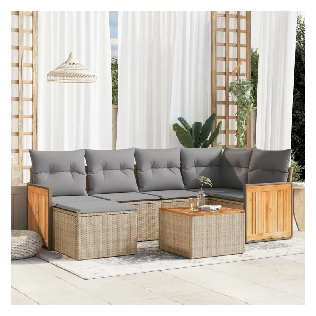 Cet ensemble de canapés de jardin est le complément parfait de votre arrière-cour, terrasse ou patio, offrant un espace confortable et accueillant pour discuter avec la famille et les amis ou simplement se détendre et profiter de l'extérieur. Matériau durable : la résine tressée, également connue sous le nom de poly rotin, est un matériau synthétique solide et nécessitant peu d'entretien qui ressemble au rotin naturel. Il est léger, facile à nettoyer et couramment utilisé pour les meubles d'extérieur en raison de sa durabilité et de ses propriétés de résistance aux intempéries.Expérience d'assise confortable : ce mobilier d'extérieur, doté de coussins épais, offre une expérience d'assise confortable.Dessus stable et facile à nettoyer : cette table de jardin a un dessus en bois d'acacia robuste, durable et facile à nettoyer avec un chiffon humide.Housse amovible et lavable : ces coussins de siège sont dotés de housses amovibles pour un lavage et un entretien faciles.Conception modulaire : cet ensemble de meubles d'extérieur a une conception modulaire, ce qui le rend complètement flexible et facile à déplacer, afin que vous puissiez créer un agencement de meubles d'extérieur personnalisé. Bon à savoir :Pour que vos meubles d'extérieur restent beaux, nous vous recommandons de les protéger avec une housse imperméable.