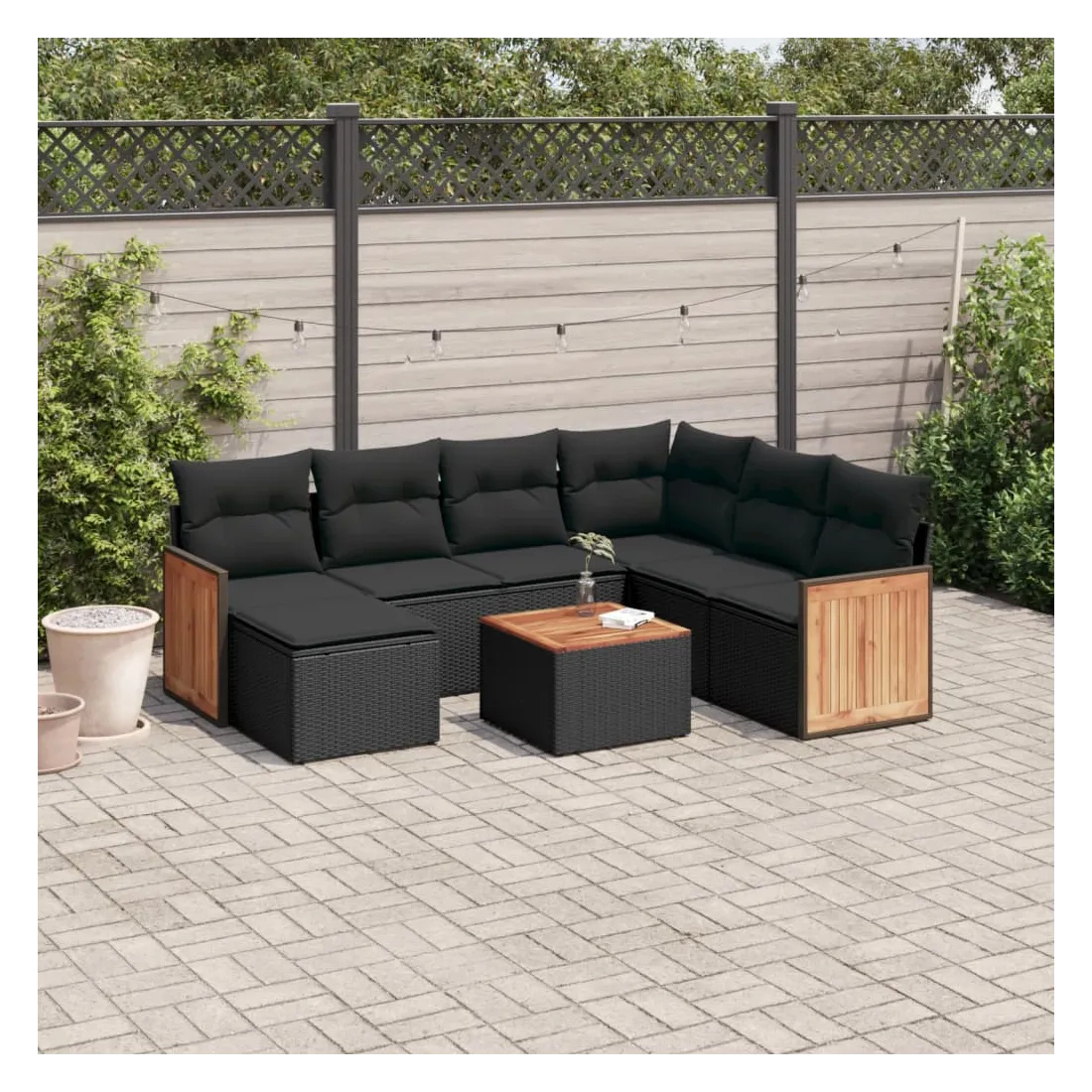 Salon de jardin 8 pcs avec coussins noir résine tressée