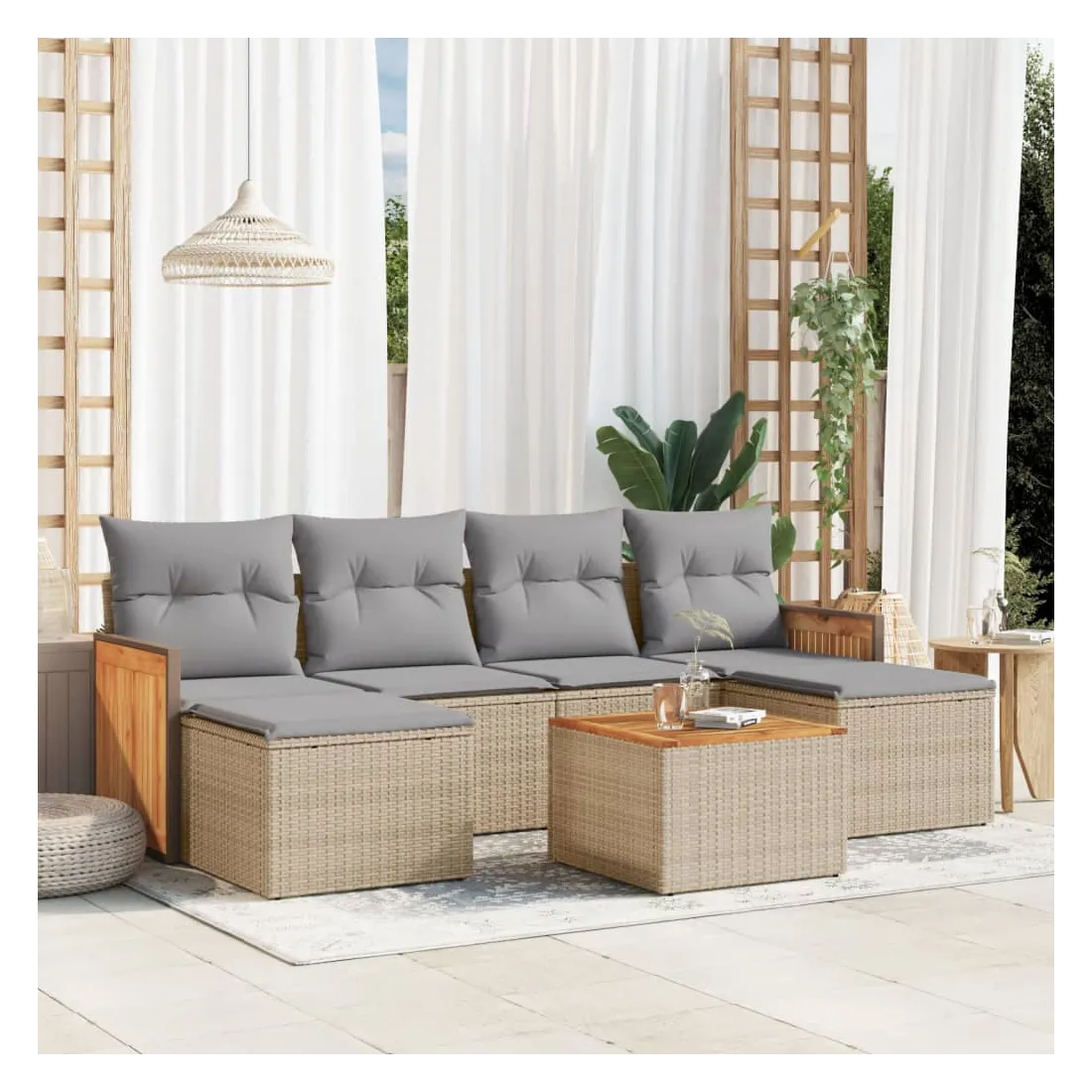 Cet ensemble de canapés de jardin est le complément parfait de votre arrière-cour, terrasse ou patio, offrant un espace confortable et accueillant pour discuter avec la famille et les amis ou simplement se détendre et profiter de l'extérieur. Matériau durable : la résine tressée, également connue sous le nom de poly rotin, est un matériau synthétique solide et nécessitant peu d'entretien qui ressemble au rotin naturel. Il est léger, facile à nettoyer et couramment utilisé pour les meubles d'extérieur en raison de sa durabilité et de ses propriétés de résistance aux intempéries.Expérience d'assise confortable : ce mobilier d'extérieur, doté de coussins épais, offre une expérience d'assise confortable.Dessus stable et facile à nettoyer : cette table de jardin a un dessus en bois d'acacia robuste, durable et facile à nettoyer avec un chiffon humide.Housse amovible et lavable : ces coussins de siège sont dotés de housses amovibles pour un lavage et un entretien faciles.Conception modulaire : cet ensemble de meubles d'extérieur a une conception modulaire, ce qui le rend complètement flexible et facile à déplacer, afin que vous puissiez créer un agencement de meubles d'extérieur personnalisé. Bon à savoir :Pour que vos meubles d'extérieur restent beaux, nous vous recommandons de les protéger avec une housse imperméable.
