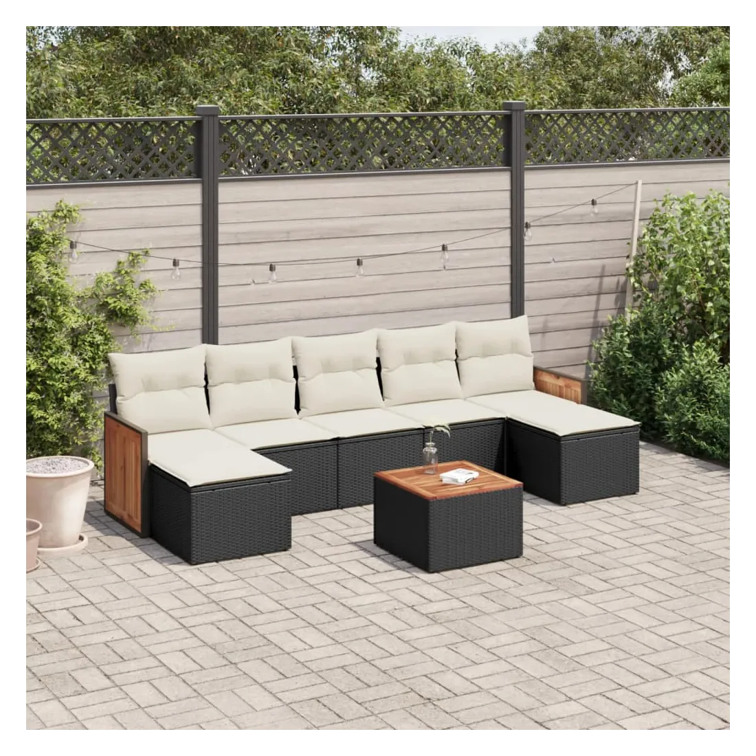 Cet ensemble de canapés de jardin est le complément parfait de votre arrière-cour, terrasse ou patio, offrant un espace confortable et accueillant pour discuter avec la famille et les amis ou simplement se détendre et profiter de l'extérieur. Matériau durable : la résine tressée, également connue sous le nom de poly rotin, est un matériau synthétique solide et nécessitant peu d'entretien qui ressemble au rotin naturel. Il est léger, facile à nettoyer et couramment utilisé pour les meubles d'extérieur en raison de sa durabilité et de ses propriétés de résistance aux intempéries.Expérience d'assise confortable : ce mobilier d'extérieur, doté de coussins épais, offre une expérience d'assise confortable.Dessus stable et facile à nettoyer : cette table de jardin a un dessus en bois d'acacia robuste, durable et facile à nettoyer avec un chiffon humide.Housse amovible et lavable : ces coussins de siège sont dotés de housses amovibles pour un lavage et un entretien faciles.Conception modulaire : cet ensemble de meubles d'extérieur a une conception modulaire, ce qui le rend complètement flexible et facile à déplacer, afin que vous puissiez créer un agencement de meubles d'extérieur personnalisé. Bon à savoir :Pour que vos meubles d'extérieur restent beaux, nous vous recommandons de les protéger avec une housse imperméable.