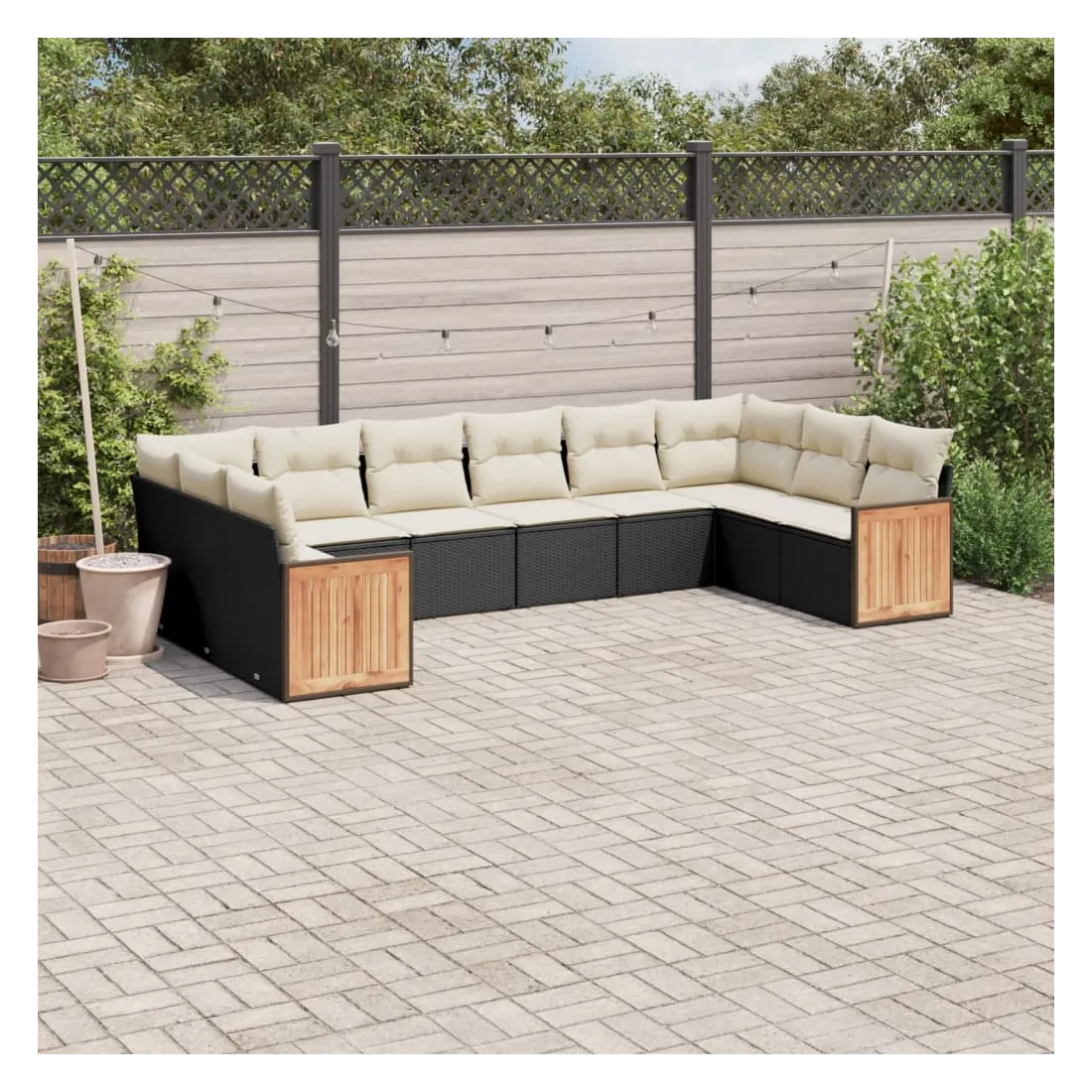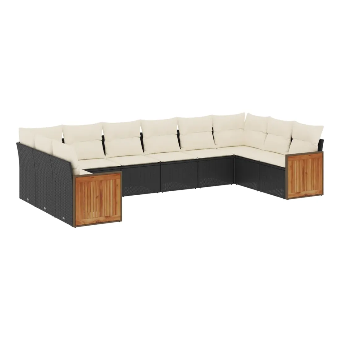 Salon de jardin 10 pcs avec coussins noir résine tressée