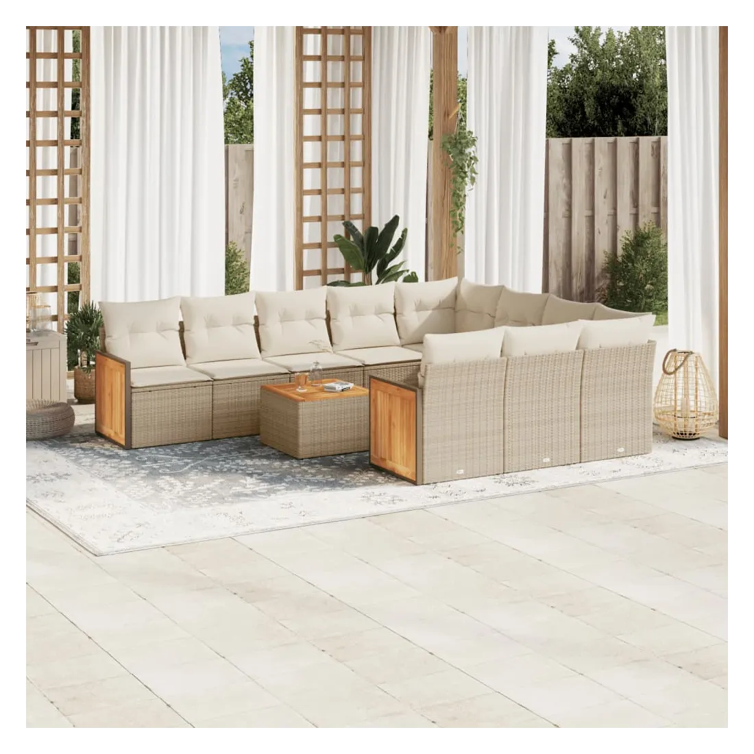 Cet ensemble de canapés de jardin est le complément parfait de votre arrière-cour, terrasse ou patio, offrant un espace confortable et accueillant pour discuter avec la famille et les amis ou simplement se détendre et profiter de l'extérieur. Matériau durable : la résine tressée, également connue sous le nom de poly rotin, est un matériau synthétique solide et nécessitant peu d'entretien qui ressemble au rotin naturel. Il est léger, facile à nettoyer et couramment utilisé pour les meubles d'extérieur en raison de sa durabilité et de ses propriétés de résistance aux intempéries.Expérience d'assise confortable : ce mobilier d'extérieur, doté de coussins épais, offre une expérience d'assise confortable.Dessus stable et facile à nettoyer : cette table de jardin a un dessus en bois d'acacia robuste, durable et facile à nettoyer avec un chiffon humide.Housse amovible et lavable : ces coussins de siège sont dotés de housses amovibles pour un lavage et un entretien faciles.Conception modulaire : cet ensemble de meubles d'extérieur a une conception modulaire, ce qui le rend complètement flexible et facile à déplacer, afin que vous puissiez créer un agencement de meubles d'extérieur personnalisé. Bon à savoir :Pour que vos meubles d'extérieur restent beaux, nous vous recommandons de les protéger avec une housse imperméable.