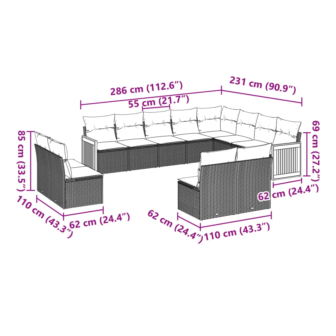- Dimensions du coussin de dossier : 55 x 45 x 13 cm (L x l x é)