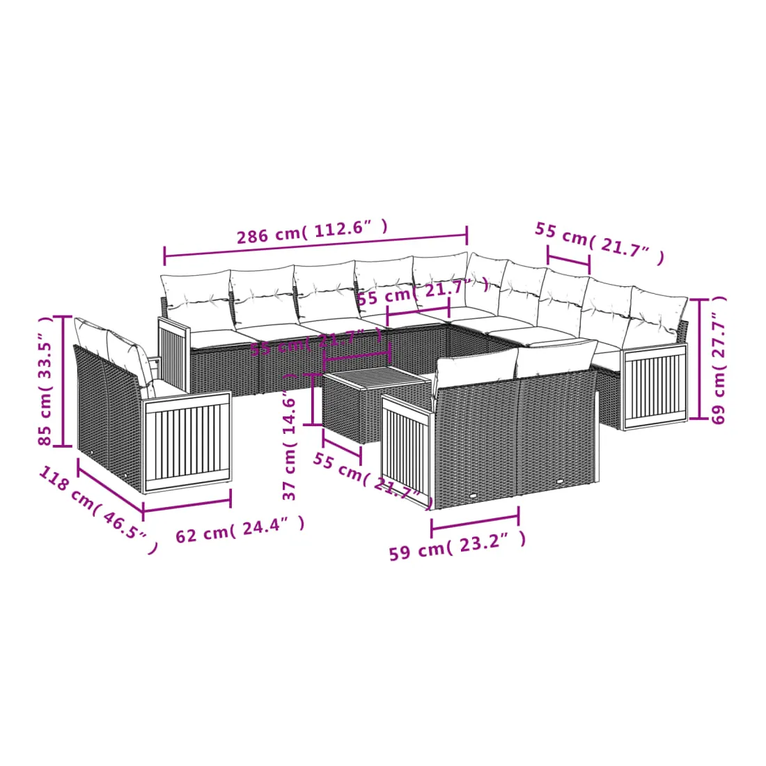 Cet ensemble de canapés de jardin est le complément parfait de votre arrière-cour, terrasse ou patio, offrant un espace confortable et accueillant pour discuter avec la famille et les amis ou simplement se détendre et profiter de l'extérieur. Matériau durable : la résine tressée, également connue sous le nom de poly rotin, est un matériau synthétique solide et nécessitant peu d'entretien qui ressemble au rotin naturel. Il est léger, facile à nettoyer et couramment utilisé pour les meubles d'extérieur en raison de sa durabilité et de ses propriétés de résistance aux intempéries.Expérience d'assise confortable : ce mobilier d'extérieur, doté de coussins épais, offre une expérience d'assise confortable.Dessus stable et facile à nettoyer : cette table de jardin a un dessus en bois d'acacia robuste, durable et facile à nettoyer avec un chiffon humide.Housse amovible et lavable : ces coussins de siège sont dotés de housses amovibles pour un lavage et un entretien faciles.Conception modulaire : cet ensemble de meubles d'extérieur a une conception modulaire, ce qui le rend complètement flexible et facile à déplacer, afin que vous puissiez créer un agencement de meubles d'extérieur personnalisé. Bon à savoir :Pour que vos meubles d'extérieur restent beaux, nous vous recommandons de les protéger avec une housse imperméable.