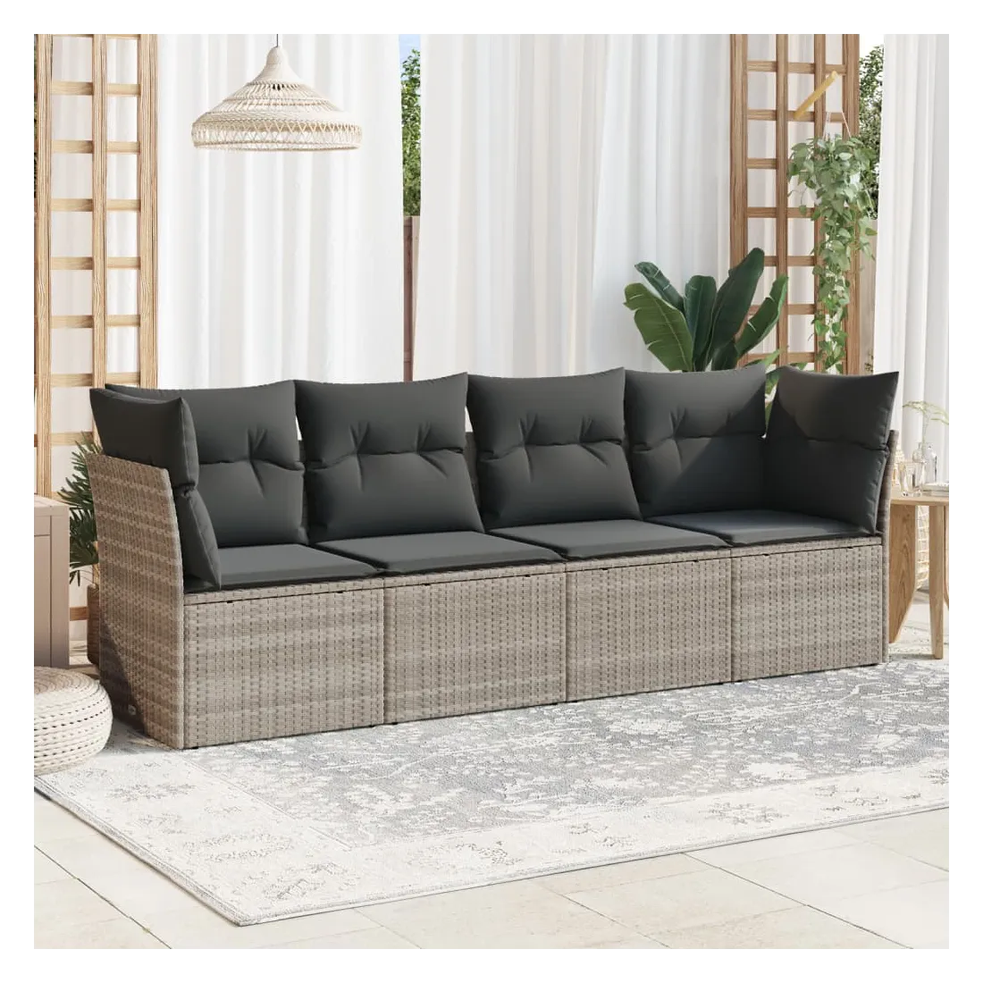 Cet ensemble de canapés de jardin est le complément parfait de votre arrière-cour, terrasse ou patio, offrant un espace confortable et accueillant pour discuter avec la famille et les amis ou simplement se détendre et profiter de l'extérieur. Matériau durable : la résine tressée, également connue sous le nom de poly rotin, est un matériau synthétique solide et nécessitant peu d'entretien qui ressemble au rotin naturel. Il est léger, facile à nettoyer et couramment utilisé pour les meubles d'extérieur en raison de sa durabilité et de ses propriétés de résistance aux intempéries.Fonction de rangement avec sac résistant à l'eau : chaque siège de jardin dispose d'un espace de rangement sous l'assise, complété par un sac résistant à l'eau pour ranger les coussins, les jouets et d'autres objets. Les sacs intérieurs sont dotés d'un couvercle et peuvent être solidement fixés aux sièges à l'aide de bandes auto-agrippantes pour plus de stabilité.Housse amovible et lavable : ces coussins de siège sont dotés de housses amovibles pour un lavage et un entretien faciles.Conception modulaire : cet ensemble de meubles d'extérieur a une conception modulaire, ce qui le rend complètement flexible et facile à déplacer, afin que vous puissiez créer un agencement de meubles d'extérieur personnalisé. Bon à savoir :Pour que vos meubles d'extérieur restent beaux, nous vous recommandons de les protéger avec une housse imperméable.