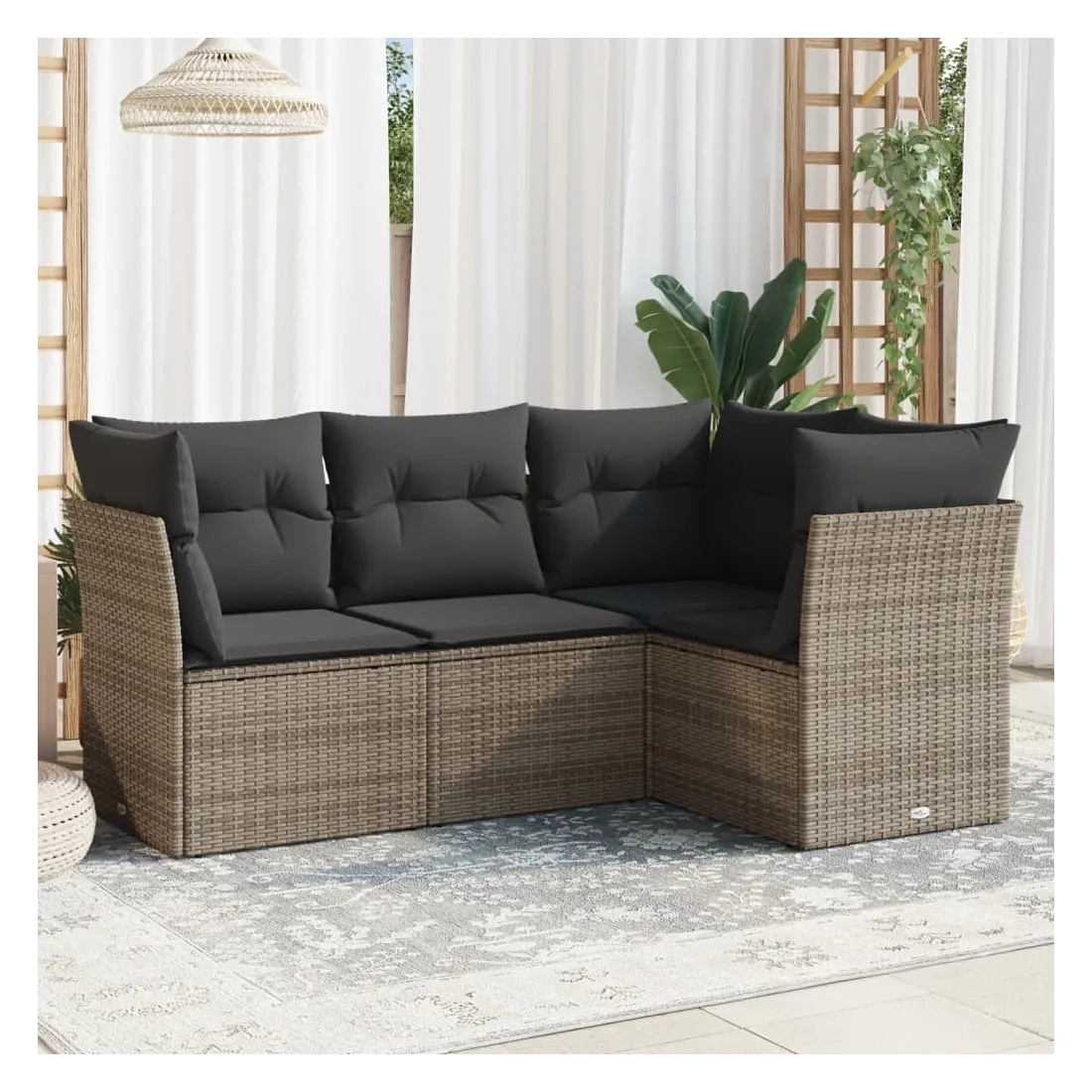 Cet ensemble de canapés de jardin est le complément parfait de votre arrière-cour, terrasse ou patio, offrant un espace confortable et accueillant pour discuter avec la famille et les amis ou simplement se détendre et profiter de l'extérieur. Matériau durable : la résine tressée, également connue sous le nom de poly rotin, est un matériau synthétique solide et nécessitant peu d'entretien qui ressemble au rotin naturel. Il est léger, facile à nettoyer et couramment utilisé pour les meubles d'extérieur en raison de sa durabilité et de ses propriétés de résistance aux intempéries.Fonction de rangement avec sac résistant à l'eau : chaque siège de jardin dispose d'un espace de rangement sous l'assise, complété par un sac résistant à l'eau pour ranger les coussins, les jouets et d'autres objets. Les sacs intérieurs sont dotés d'un couvercle et peuvent être solidement fixés aux sièges à l'aide de bandes auto-agrippantes pour plus de stabilité.Housse amovible et lavable : ces coussins de siège sont dotés de housses amovibles pour un lavage et un entretien faciles.Conception modulaire : cet ensemble de meubles d'extérieur a une conception modulaire, ce qui le rend complètement flexible et facile à déplacer, afin que vous puissiez créer un agencement de meubles d'extérieur personnalisé. Bon à savoir :Pour que vos meubles d'extérieur restent beaux, nous vous recommandons de les protéger avec une housse imperméable.