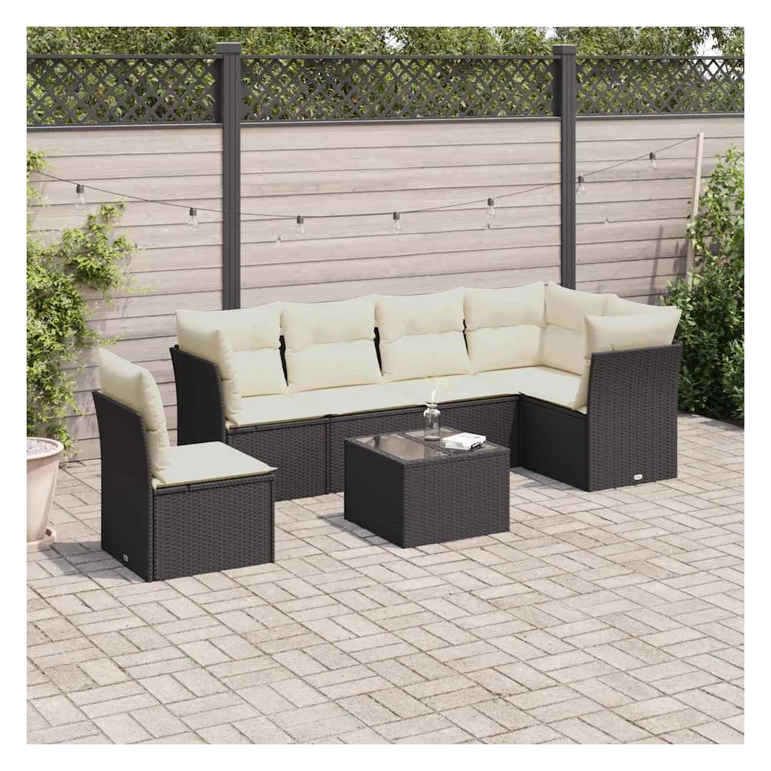 Cet ensemble de canapés de jardin est le complément parfait de votre arrière-cour, terrasse ou patio, offrant un espace confortable et accueillant pour discuter avec la famille et les amis ou simplement se détendre et profiter de l'extérieur. Matériau durable : la résine tressée, également connue sous le nom de poly rotin, est un matériau synthétique solide et nécessitant peu d'entretien qui ressemble au rotin naturel. Il est léger, facile à nettoyer et couramment utilisé pour les meubles d'extérieur en raison de sa durabilité et de ses propriétés de résistance aux intempéries.Fonction de rangement avec sac résistant à l'eau : chaque siège de jardin dispose d'un espace de rangement sous l'assise, complété par un sac résistant à l'eau pour ranger les coussins, les jouets et d'autres objets. Les sacs intérieurs sont dotés d'un couvercle et peuvent être solidement fixés aux sièges à l'aide de bandes auto-agrippantes pour plus de stabilité.Dessus en verre : le dessus de la table d'extérieur est fabriqué en verre trempé solide et durable, ce qui le rend facile à nettoyer avec un chiffon humide et ajoute une touche d'élégance à votre espace extérieur.Housse amovible et lavable : ces coussins de siège sont dotés de housses amovibles pour un lavage et un entretien faciles.Conception modulaire : cet ensemble de meubles d'extérieur a une conception modulaire, ce qui le rend complètement flexible et facile à déplacer, afin que vous puissiez créer un agencement de meubles d'extérieur personnalisé. Bon à savoir :Pour que vos meubles d'extérieur restent beaux, nous vous recommandons de les protéger avec une housse imperméable.