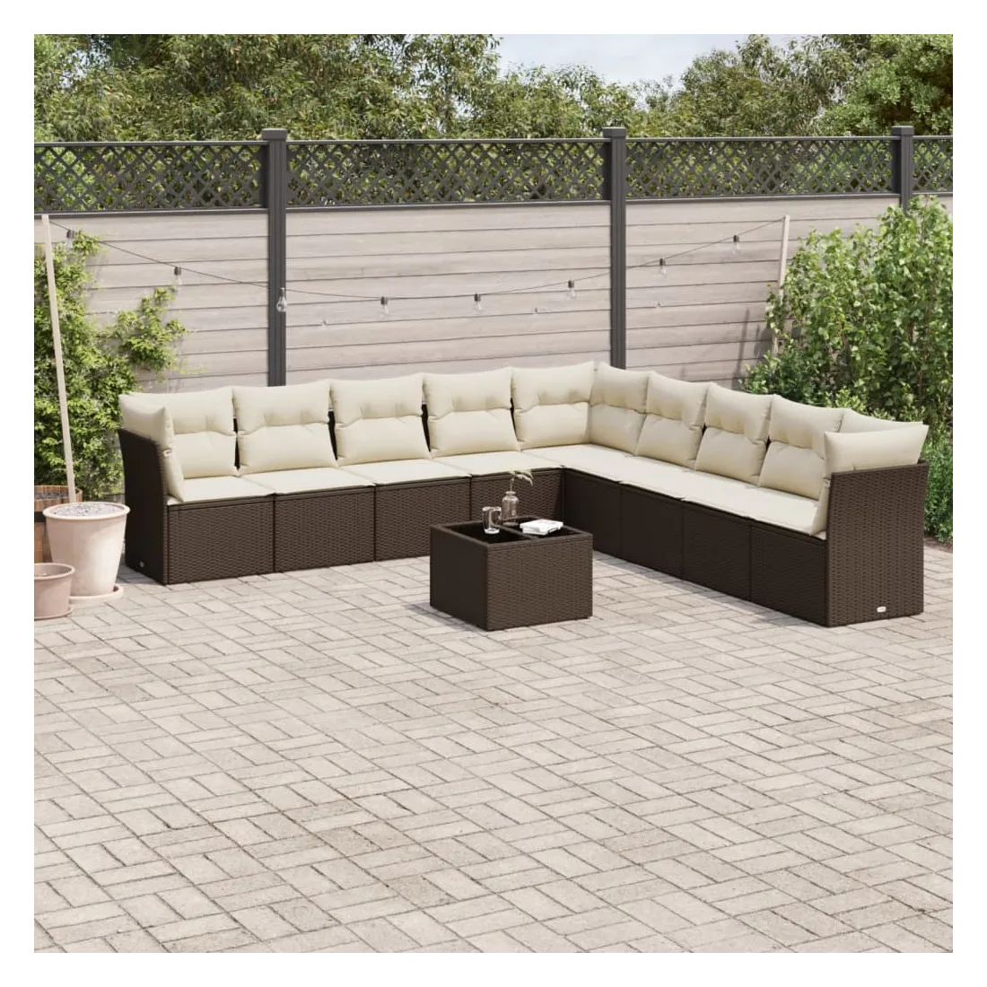 Cet ensemble de canapés de jardin est le complément parfait de votre arrière-cour, terrasse ou patio, offrant un espace confortable et accueillant pour discuter avec la famille et les amis ou simplement se détendre et profiter de l'extérieur. Matériau durable : la résine tressée, également connue sous le nom de poly rotin, est un matériau synthétique solide et nécessitant peu d'entretien qui ressemble au rotin naturel. Il est léger, facile à nettoyer et couramment utilisé pour les meubles d'extérieur en raison de sa durabilité et de ses propriétés de résistance aux intempéries.Fonction de rangement avec sac résistant à l'eau : chaque siège de jardin dispose d'un espace de rangement sous l'assise, complété par un sac résistant à l'eau pour ranger les coussins, les jouets et d'autres objets. Les sacs intérieurs sont dotés d'un couvercle et peuvent être solidement fixés aux sièges à l'aide de bandes auto-agrippantes pour plus de stabilité.Dessus en verre : le dessus de la table d'extérieur est fabriqué en verre trempé solide et durable, ce qui le rend facile à nettoyer avec un chiffon humide et ajoute une touche d'élégance à votre espace extérieur.Housse amovible et lavable : ces coussins de siège sont dotés de housses amovibles pour un lavage et un entretien faciles.Conception modulaire : cet ensemble de meubles d'extérieur a une conception modulaire, ce qui le rend complètement flexible et facile à déplacer, afin que vous puissiez créer un agencement de meubles d'extérieur personnalisé. Bon à savoir :Pour que vos meubles d'extérieur restent beaux, nous vous recommandons de les protéger avec une housse imperméable.