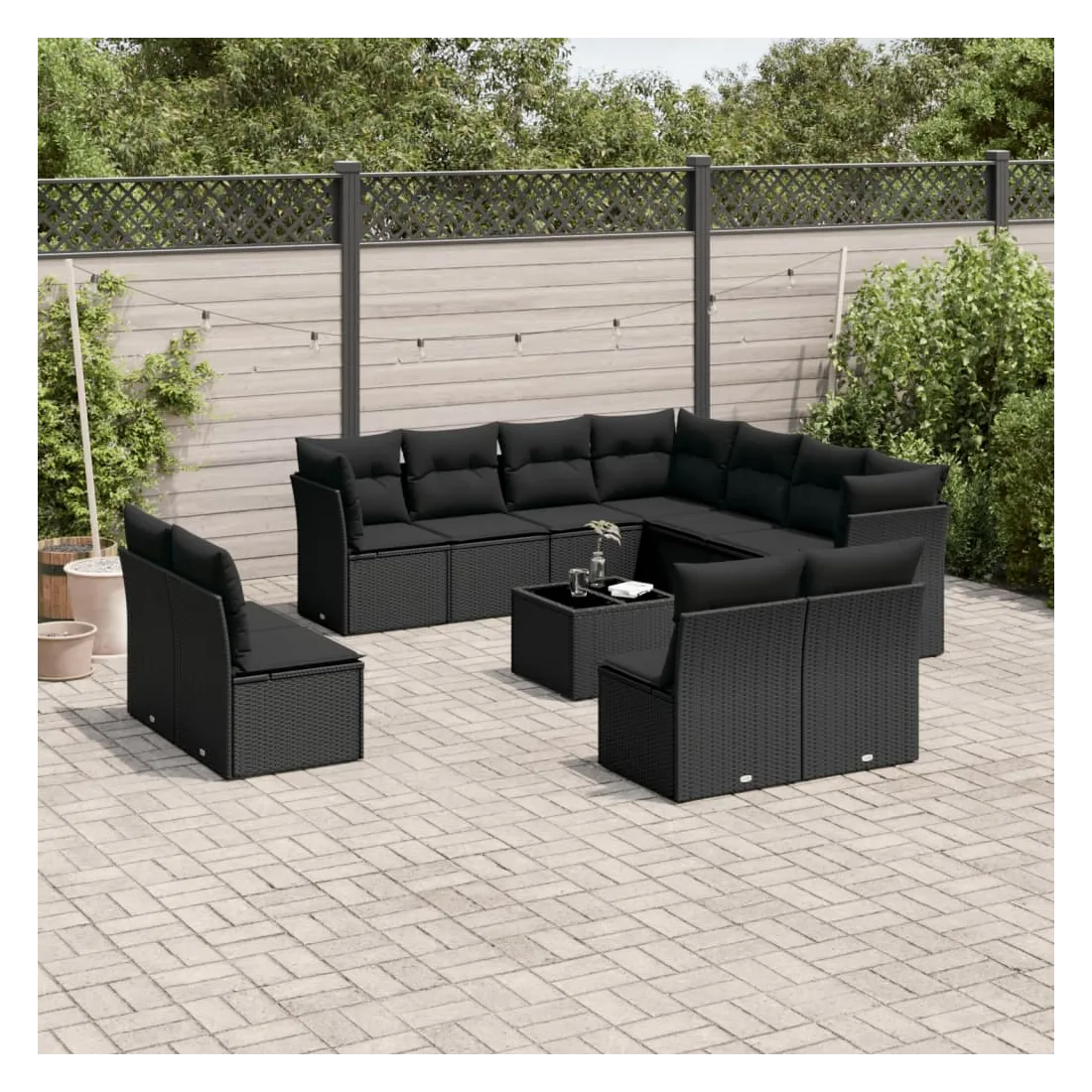 Cet ensemble de canapés de jardin est le complément parfait de votre arrière-cour, terrasse ou patio, offrant un espace confortable et accueillant pour discuter avec la famille et les amis ou simplement se détendre et profiter de l'extérieur. Matériau durable : la résine tressée, également connue sous le nom de poly rotin, est un matériau synthétique solide et nécessitant peu d'entretien qui ressemble au rotin naturel. Il est léger, facile à nettoyer et couramment utilisé pour les meubles d'extérieur en raison de sa durabilité et de ses propriétés de résistance aux intempéries.Fonction de rangement avec sac résistant à l'eau : chaque siège de jardin dispose d'un espace de rangement sous l'assise, complété par un sac résistant à l'eau pour ranger les coussins, les jouets et d'autres objets. Les sacs intérieurs sont dotés d'un couvercle et peuvent être solidement fixés aux sièges à l'aide de bandes auto-agrippantes pour plus de stabilité.Dessus en verre : le dessus de la table d'extérieur est fabriqué en verre trempé solide et durable, ce qui le rend facile à nettoyer avec un chiffon humide et ajoute une touche d'élégance à votre espace extérieur.Housse amovible et lavable : ces coussins de siège sont dotés de housses amovibles pour un lavage et un entretien faciles.Conception modulaire : cet ensemble de meubles d'extérieur a une conception modulaire, ce qui le rend complètement flexible et facile à déplacer, afin que vous puissiez créer un agencement de meubles d'extérieur personnalisé. Bon à savoir :Pour que vos meubles d'extérieur restent beaux, nous vous recommandons de les protéger avec une housse imperméable.