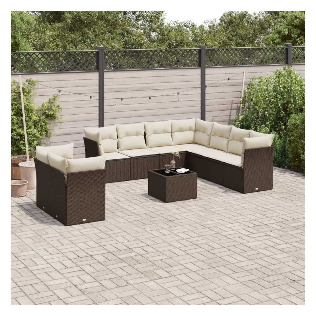Cet ensemble de canapés de jardin est le complément parfait de votre arrière-cour, terrasse ou patio, offrant un espace confortable et accueillant pour discuter avec la famille et les amis ou simplement se détendre et profiter de l'extérieur. Matériau durable : la résine tressée, également connue sous le nom de poly rotin, est un matériau synthétique solide et nécessitant peu d'entretien qui ressemble au rotin naturel. Il est léger, facile à nettoyer et couramment utilisé pour les meubles d'extérieur en raison de sa durabilité et de ses propriétés de résistance aux intempéries.Fonction de rangement avec sac résistant à l'eau : chaque siège de jardin dispose d'un espace de rangement sous l'assise, complété par un sac résistant à l'eau pour ranger les coussins, les jouets et d'autres objets. Les sacs intérieurs sont dotés d'un couvercle et peuvent être solidement fixés aux sièges à l'aide de bandes auto-agrippantes pour plus de stabilité.Dessus en verre : le dessus de la table d'extérieur est fabriqué en verre trempé solide et durable, ce qui le rend facile à nettoyer avec un chiffon humide et ajoute une touche d'élégance à votre espace extérieur.Housse amovible et lavable : ces coussins de siège sont dotés de housses amovibles pour un lavage et un entretien faciles.Conception modulaire : cet ensemble de meubles d'extérieur a une conception modulaire, ce qui le rend complètement flexible et facile à déplacer, afin que vous puissiez créer un agencement de meubles d'extérieur personnalisé. Bon à savoir :Pour que vos meubles d'extérieur restent beaux, nous vous recommandons de les protéger avec une housse imperméable.