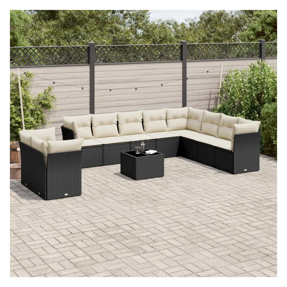 Cet ensemble de canapés de jardin est le complément parfait de votre arrière-cour, terrasse ou patio, offrant un espace confortable et accueillant pour discuter avec la famille et les amis ou simplement se détendre et profiter de l'extérieur. Matériau durable : la résine tressée, également connue sous le nom de poly rotin, est un matériau synthétique solide et nécessitant peu d'entretien qui ressemble au rotin naturel. Il est léger, facile à nettoyer et couramment utilisé pour les meubles d'extérieur en raison de sa durabilité et de ses propriétés de résistance aux intempéries.Fonction de rangement avec sac résistant à l'eau : chaque siège de jardin dispose d'un espace de rangement sous l'assise, complété par un sac résistant à l'eau pour ranger les coussins, les jouets et d'autres objets. Les sacs intérieurs sont dotés d'un couvercle et peuvent être solidement fixés aux sièges à l'aide de bandes auto-agrippantes pour plus de stabilité.Dessus en verre : le dessus de la table d'extérieur est fabriqué en verre trempé solide et durable, ce qui le rend facile à nettoyer avec un chiffon humide et ajoute une touche d'élégance à votre espace extérieur.Housse amovible et lavable : ces coussins de siège sont dotés de housses amovibles pour un lavage et un entretien faciles.Conception modulaire : cet ensemble de meubles d'extérieur a une conception modulaire, ce qui le rend complètement flexible et facile à déplacer, afin que vous puissiez créer un agencement de meubles d'extérieur personnalisé. Bon à savoir :Pour que vos meubles d'extérieur restent beaux, nous vous recommandons de les protéger avec une housse imperméable.