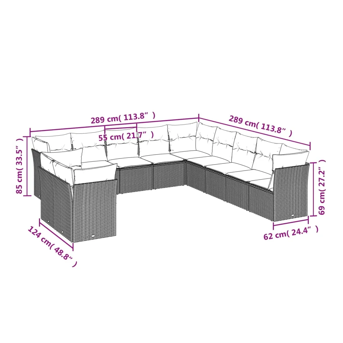 - Dimensions totales du canapé 9 places : 289 x 289 x 69 cm (l x P x H)