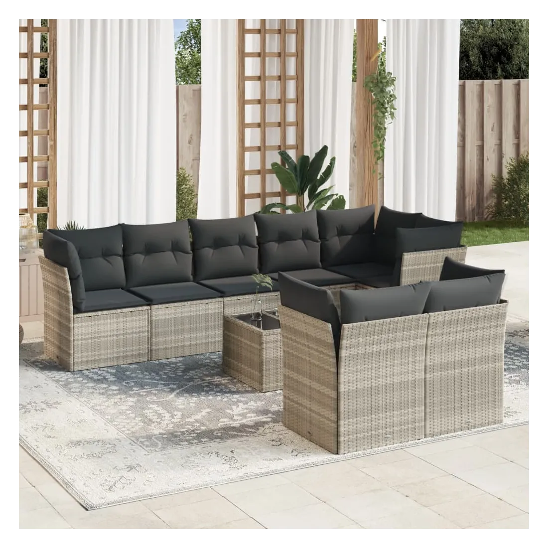 Cet ensemble de canapés de jardin est le complément parfait de votre arrière-cour, terrasse ou patio, offrant un espace confortable et accueillant pour discuter avec la famille et les amis ou simplement se détendre et profiter de l'extérieur. Matériau durable : la résine tressée, également connue sous le nom de poly rotin, est un matériau synthétique solide et nécessitant peu d'entretien qui ressemble au rotin naturel. Il est léger, facile à nettoyer et couramment utilisé pour les meubles d'extérieur en raison de sa durabilité et de ses propriétés de résistance aux intempéries.Fonction de rangement avec sac résistant à l'eau : chaque siège de jardin dispose d'un espace de rangement sous l'assise, complété par un sac résistant à l'eau pour ranger les coussins, les jouets et d'autres objets. Les sacs intérieurs sont dotés d'un couvercle et peuvent être solidement fixés aux sièges à l'aide de bandes auto-agrippantes pour plus de stabilité.Dessus en verre : le dessus de la table d'extérieur est fabriqué en verre trempé solide et durable, ce qui le rend facile à nettoyer avec un chiffon humide et ajoute une touche d'élégance à votre espace extérieur.Housse amovible et lavable : ces coussins de siège sont dotés de housses amovibles pour un lavage et un entretien faciles.Conception modulaire : cet ensemble de meubles d'extérieur a une conception modulaire, ce qui le rend complètement flexible et facile à déplacer, afin que vous puissiez créer un agencement de meubles d'extérieur personnalisé. Bon à savoir :Pour que vos meubles d'extérieur restent beaux, nous vous recommandons de les protéger avec une housse imperméable.