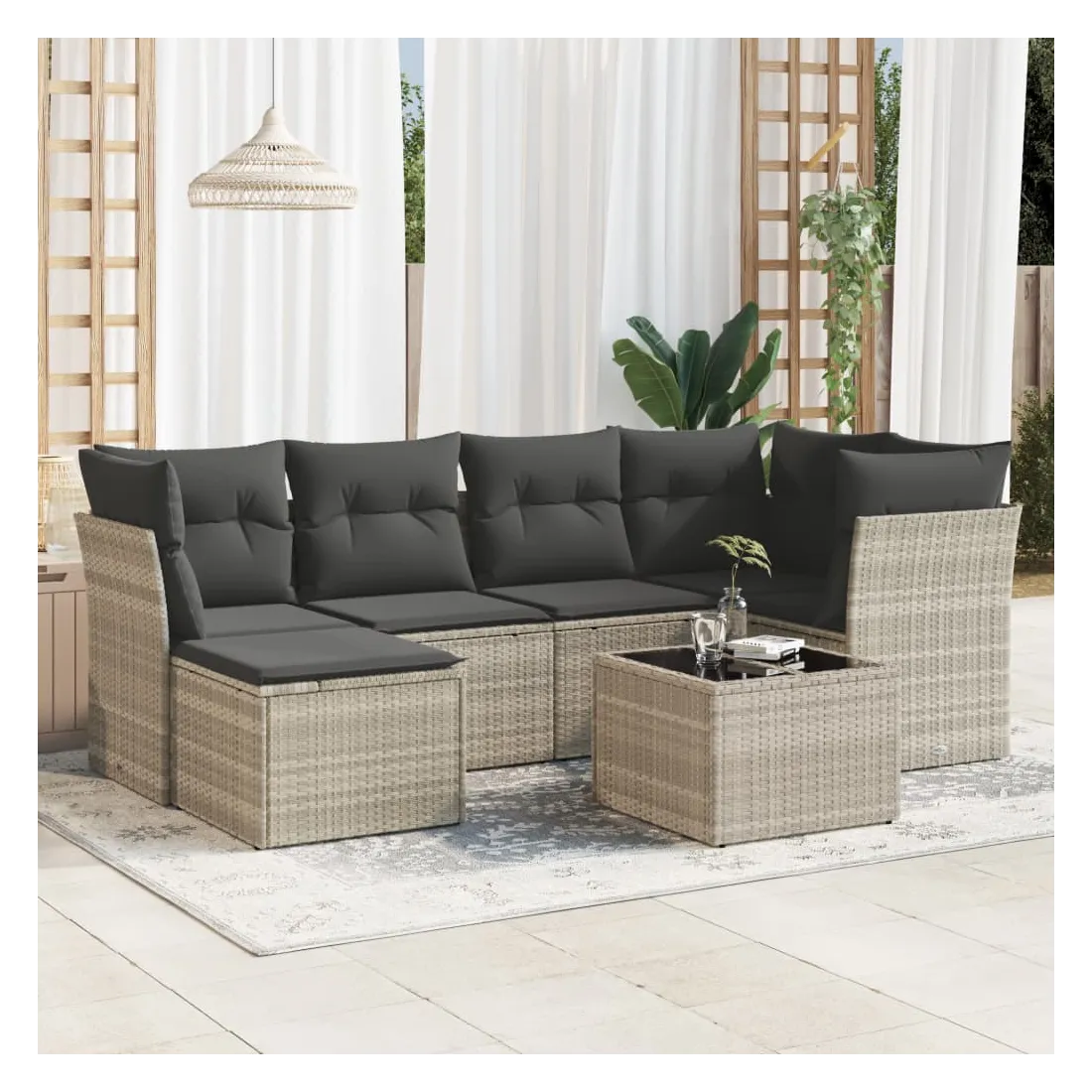 Cet ensemble de canapés de jardin est le complément parfait de votre arrière-cour, terrasse ou patio, offrant un espace confortable et accueillant pour discuter avec la famille et les amis ou simplement se détendre et profiter de l'extérieur. Matériau durable : la résine tressée, également connue sous le nom de poly rotin, est un matériau synthétique solide et nécessitant peu d'entretien qui ressemble au rotin naturel. Il est léger, facile à nettoyer et couramment utilisé pour les meubles d'extérieur en raison de sa durabilité et de ses propriétés de résistance aux intempéries.Fonction de rangement avec sac résistant à l'eau : chaque siège de jardin dispose d'un espace de rangement sous l'assise, complété par un sac résistant à l'eau pour ranger les coussins, les jouets et d'autres objets. Les sacs intérieurs sont dotés d'un couvercle et peuvent être solidement fixés aux sièges à l'aide de bandes auto-agrippantes pour plus de stabilité.Dessus en verre : le dessus de la table d'extérieur est fabriqué en verre trempé solide et durable, ce qui le rend facile à nettoyer avec un chiffon humide et ajoute une touche d'élégance à votre espace extérieur.Housse amovible et lavable : ces coussins de siège sont dotés de housses amovibles pour un lavage et un entretien faciles.Conception modulaire : cet ensemble de meubles d'extérieur a une conception modulaire, ce qui le rend complètement flexible et facile à déplacer, afin que vous puissiez créer un agencement de meubles d'extérieur personnalisé. Bon à savoir :Pour que vos meubles d'extérieur restent beaux, nous vous recommandons de les protéger avec une housse imperméable.