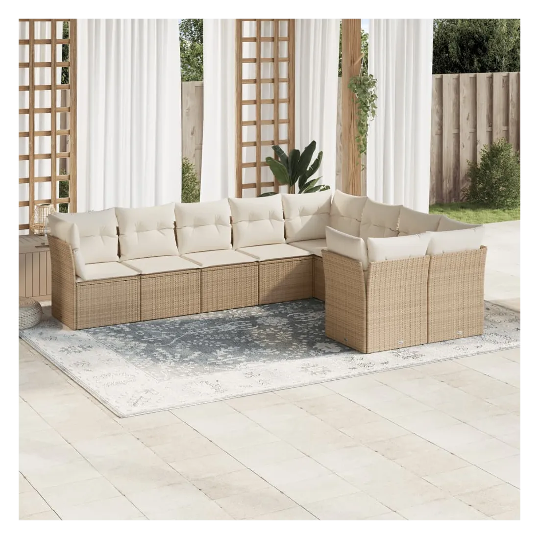 Salon de jardin avec coussins 9 pcs beige résine tressée