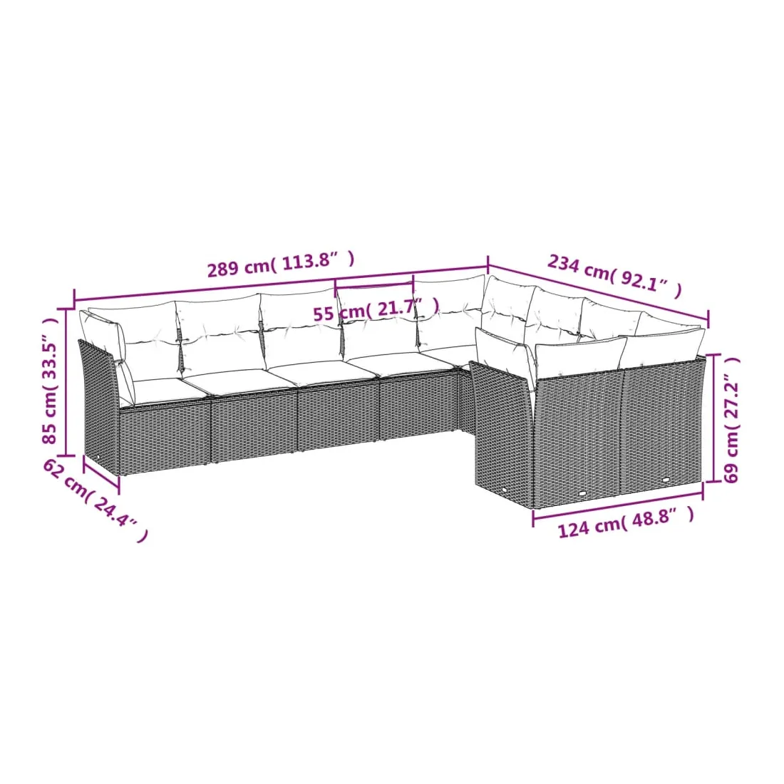 • 9 x coussin d'assise avec housse amovible et lavable