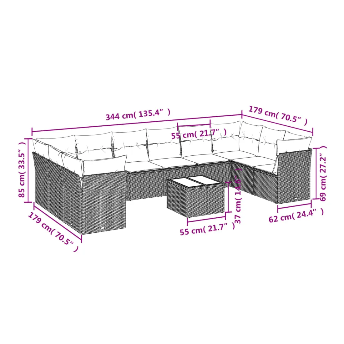 - Dimensions du coussin de siège : 55 x 55 x 3 cm (l x P x é)
