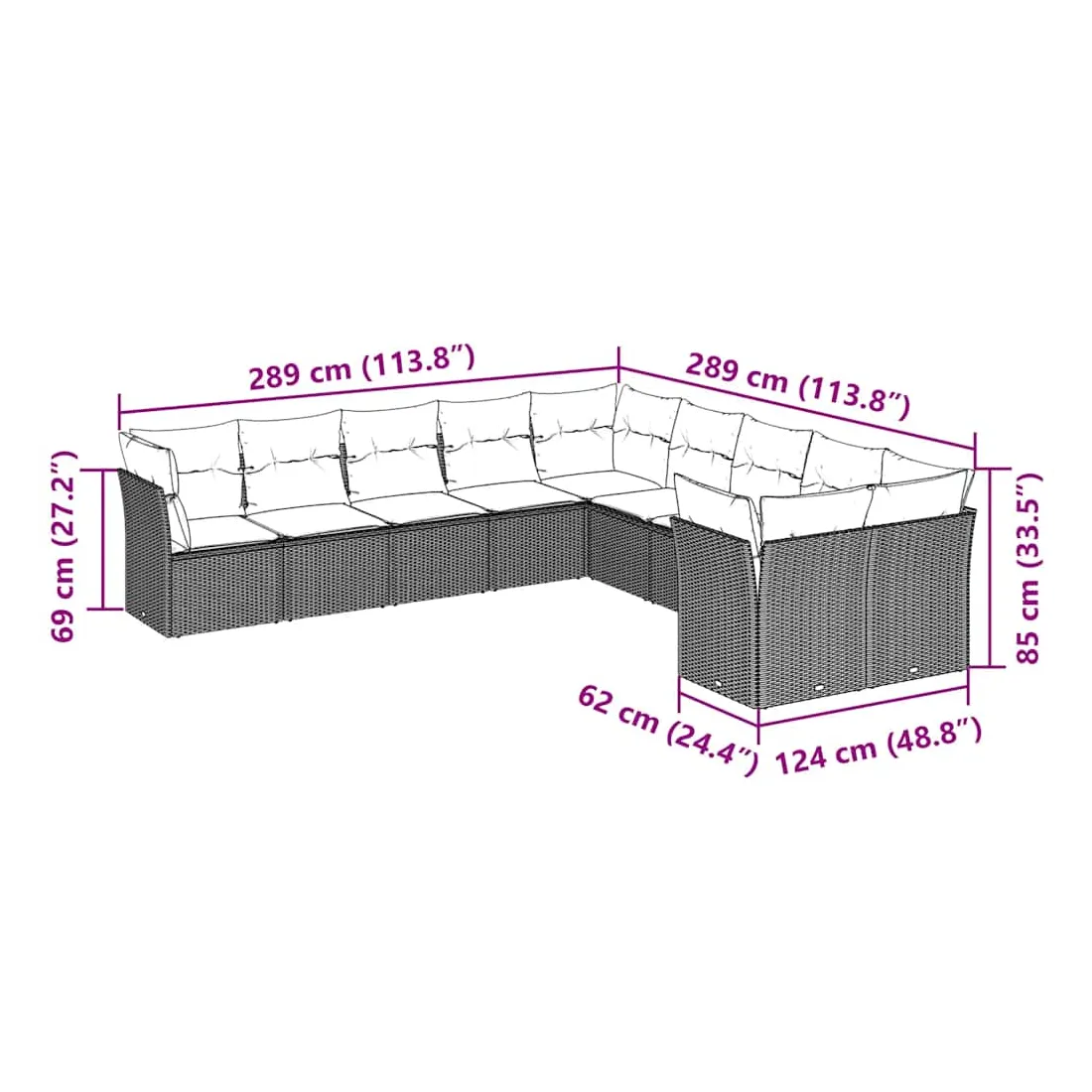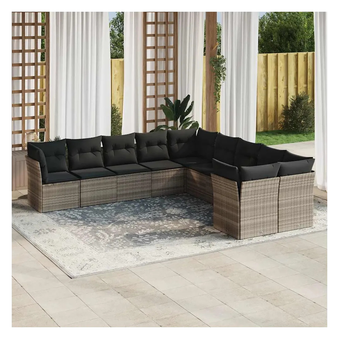 Salon de jardin avec coussins 10 pcs gris clair résine tressée