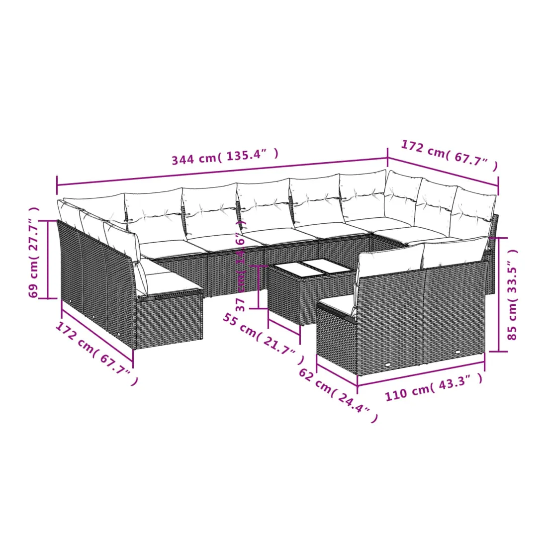 - Dimensions du coussin de dossier : 55 x 45 x 13 cm (L x l x é)