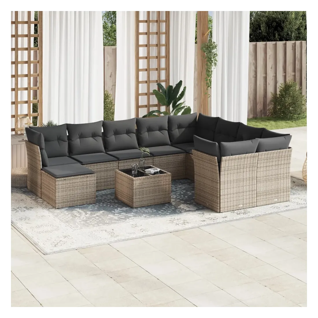 Cet ensemble de canapés de jardin est le complément parfait de votre arrière-cour, terrasse ou patio, offrant un espace confortable et accueillant pour discuter avec la famille et les amis ou simplement se détendre et profiter de l'extérieur. Matériau durable : la résine tressée, également connue sous le nom de poly rotin, est un matériau synthétique solide et nécessitant peu d'entretien qui ressemble au rotin naturel. Il est léger, facile à nettoyer et couramment utilisé pour les meubles d'extérieur en raison de sa durabilité et de ses propriétés de résistance aux intempéries.Fonction de rangement avec sac résistant à l'eau : chaque siège de jardin dispose d'un espace de rangement sous l'assise, complété par un sac résistant à l'eau pour ranger les coussins, les jouets et d'autres objets. Les sacs intérieurs sont dotés d'un couvercle et peuvent être solidement fixés aux sièges à l'aide de bandes auto-agrippantes pour plus de stabilité.Dessus en verre : le dessus de la table d'extérieur est fabriqué en verre trempé solide et durable, ce qui le rend facile à nettoyer avec un chiffon humide et ajoute une touche d'élégance à votre espace extérieur.Housse amovible et lavable : ces coussins de siège sont dotés de housses amovibles pour un lavage et un entretien faciles.Conception modulaire : cet ensemble de meubles d'extérieur a une conception modulaire, ce qui le rend complètement flexible et facile à déplacer, afin que vous puissiez créer un agencement de meubles d'extérieur personnalisé. Bon à savoir :Pour que vos meubles d'extérieur restent beaux, nous vous recommandons de les protéger avec une housse imperméable.