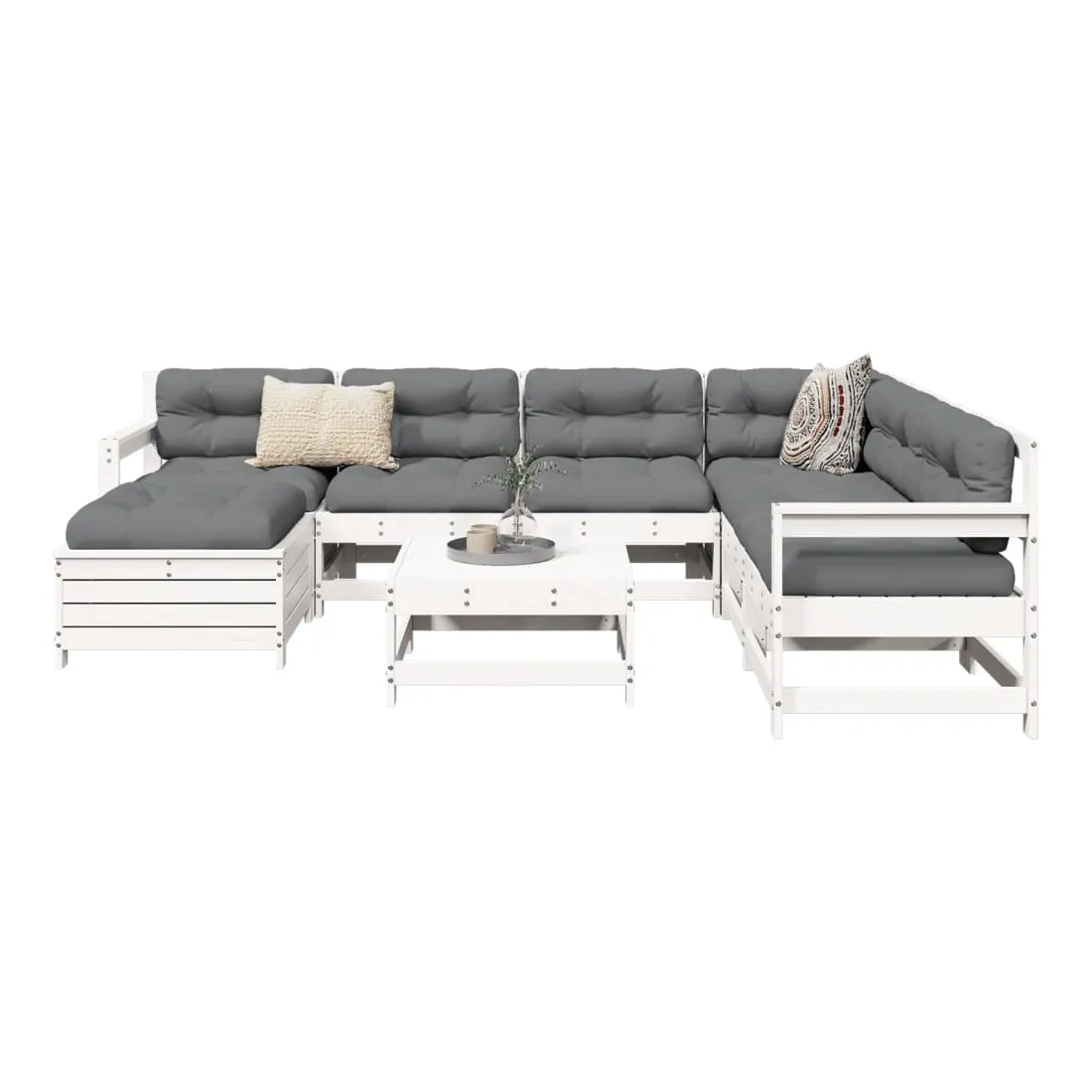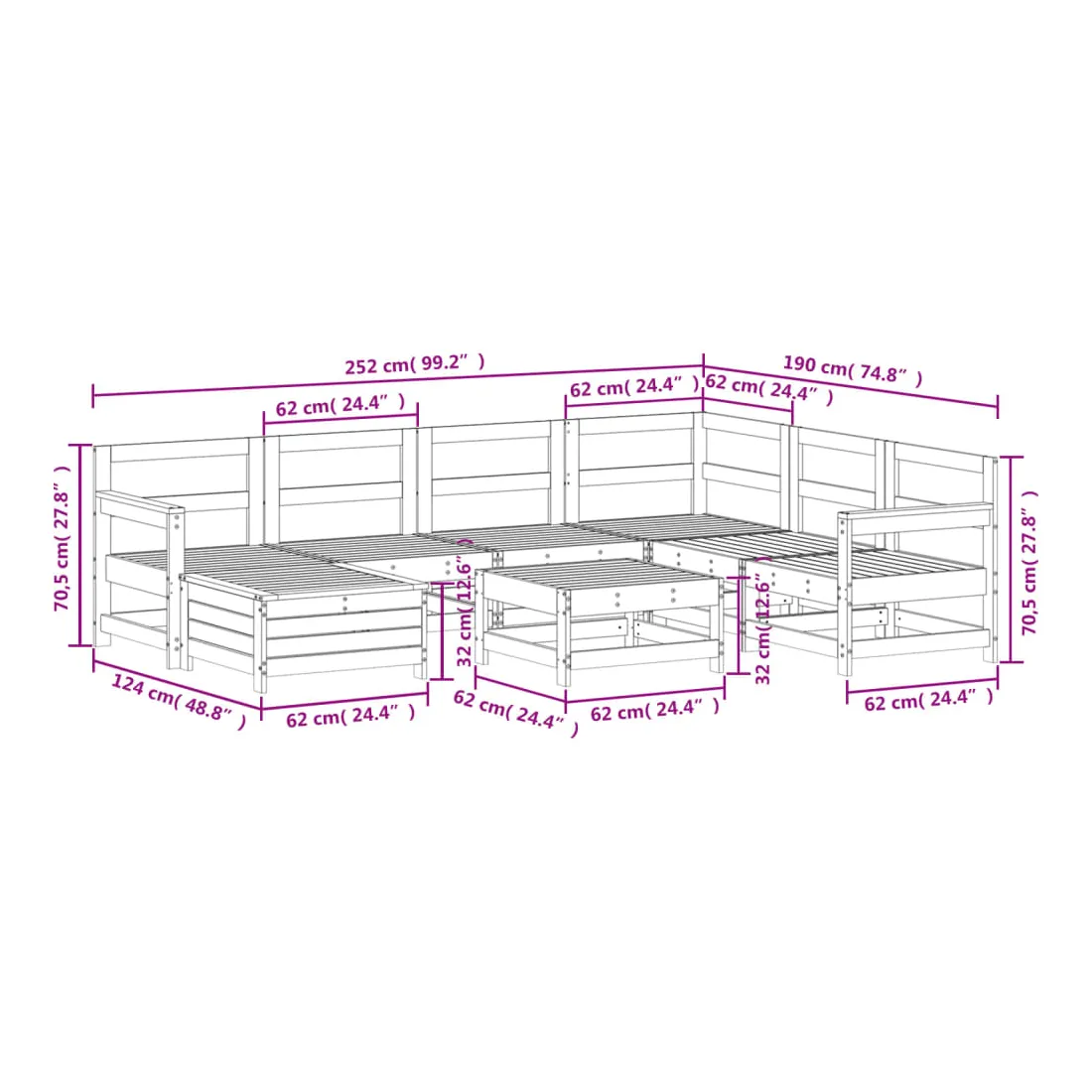 Cet ensemble de salon de jardin en bois avec un design à lattes sera un excellent complément à votre jardin, patio ou terrasse pour profiter d'un moment agréable avec votre famille ou vos amis. Matériau robuste et durable : le bois de pin massif est connu pour sa résistance et sa durabilité. Ses grains droits et ses nœuds distinctifs contribuent à son charme rustique. Bien ventilé et prévention de l'accumulation d'eau : la conception à lattes favorise une circulation optimale de l'air et empêche efficacement l'accumulation d'eau, assurant ainsi une assise sèche et confortable. Utilisation polyvalente : le repose-pied de jardin peut non seulement être utilisé pour s'asseoir ou se détendre, mais il peut également être utilisé comme table basse pour contenir vos boissons, votre nourriture et d'autres décorations. Conception modulaire : cet ensemble de meubles d'extérieur a une conception modulaire, ce qui le rend complètement flexible et facile à déplacer, afin que vous puissiez créer un agencement de meubles d'extérieur personnalisé. Bon à savoir :Pour que vos meubles d'extérieur restent beaux, nous vous recommandons de les protéger avec une housse imperméable.