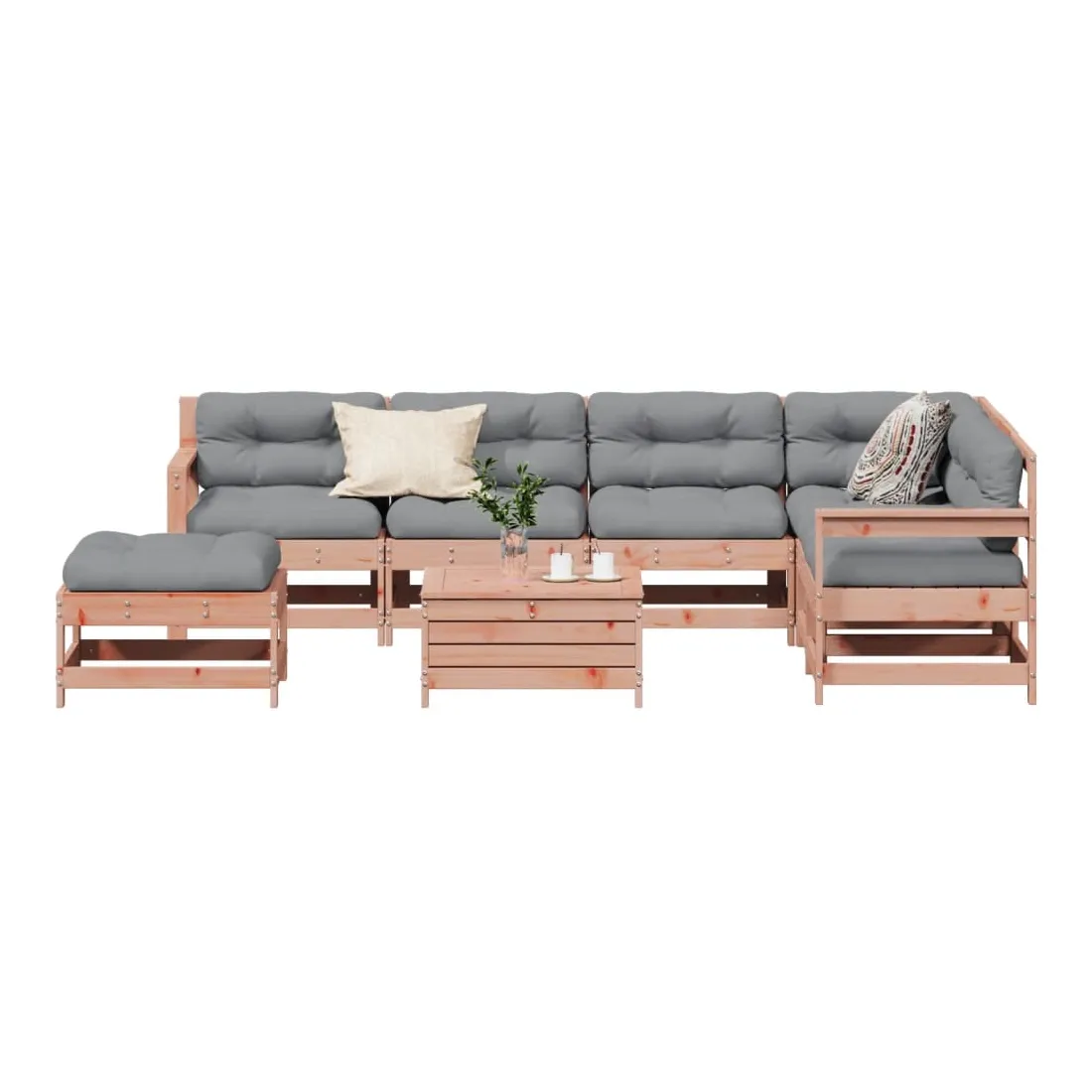 Salon de jardin 8 pcs avec coussins bois massif douglas