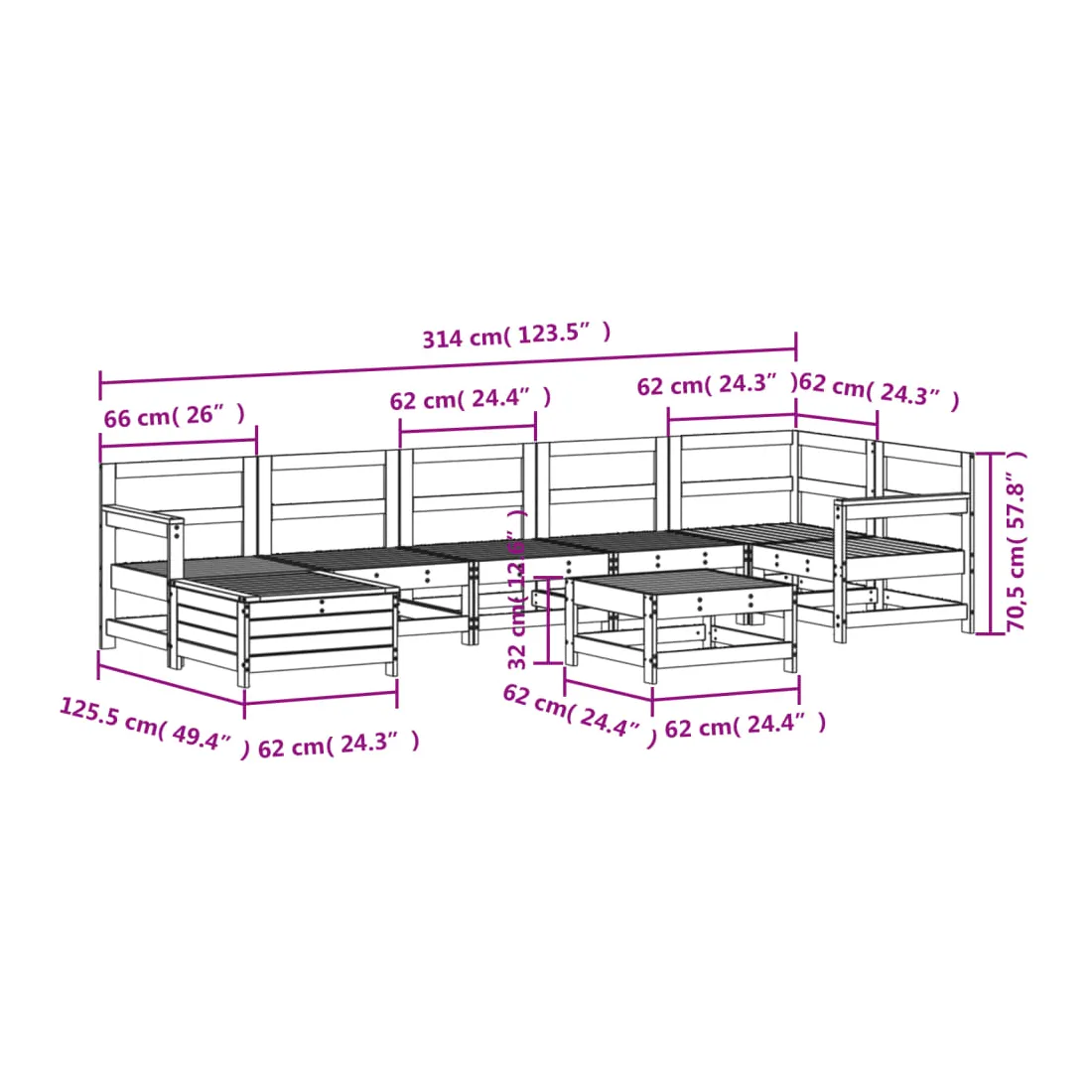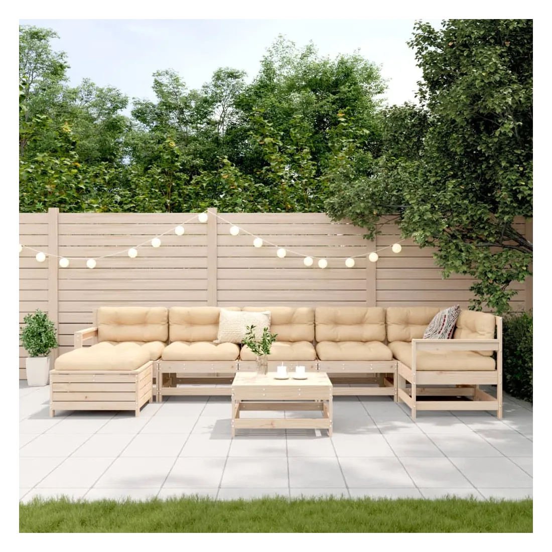 Cet ensemble de salon de jardin en bois avec un design à lattes sera un excellent complément à votre jardin, patio ou terrasse pour profiter d'un moment agréable avec votre famille ou vos amis. Matériau robuste et durable : le bois de pin massif est connu pour sa résistance et sa durabilité. Ses grains droits et ses nœuds distinctifs contribuent à son charme rustique. Bien ventilé et prévention de l'accumulation d'eau : la conception à lattes favorise une circulation optimale de l'air et empêche efficacement l'accumulation d'eau, assurant ainsi une assise sèche et confortable. Utilisation polyvalente : le repose-pied de jardin peut non seulement être utilisé pour s'asseoir ou se détendre, mais il peut également être utilisé comme table basse pour contenir vos boissons, votre nourriture et d'autres décorations. Conception modulaire : cet ensemble de meubles d'extérieur a une conception modulaire, ce qui le rend complètement flexible et facile à déplacer, afin que vous puissiez créer un agencement de meubles d'extérieur personnalisé. Bon à savoir :Pour que vos meubles d'extérieur restent beaux, nous vous recommandons de les protéger avec une housse imperméable.