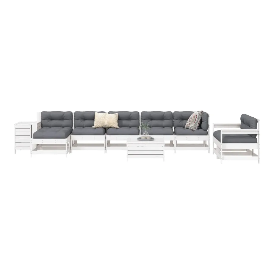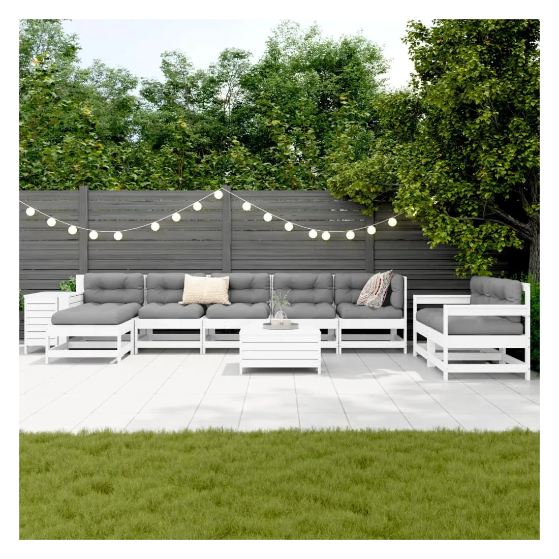 Cet ensemble de salon de jardin en bois avec un design à lattes sera un excellent complément à votre jardin, patio ou terrasse pour profiter d'un moment agréable avec votre famille ou vos amis. Matériau robuste et durable : le bois de pin massif est connu pour sa résistance et sa durabilité. Ses grains droits et ses nœuds distinctifs contribuent à son charme rustique. Bien ventilé et prévention de l'accumulation d'eau : la conception à lattes favorise une circulation optimale de l'air et empêche efficacement l'accumulation d'eau, assurant ainsi une assise sèche et confortable. Utilisation polyvalente : le repose-pied de jardin peut non seulement être utilisé pour s'asseoir ou se détendre, mais il peut également être utilisé comme table basse pour contenir vos boissons, votre nourriture et d'autres décorations. Table pratique : la table de jardin vous offre un endroit pratique pour atteindre facilement vos essentiels. Conception modulaire : cet ensemble de meubles d'extérieur a une conception modulaire, ce qui le rend complètement flexible et facile à déplacer, afin que vous puissiez créer un agencement de meubles d'extérieur personnalisé. Bon à savoir :Pour que vos meubles d'extérieur restent beaux, nous vous recommandons de les protéger avec une housse imperméable.
