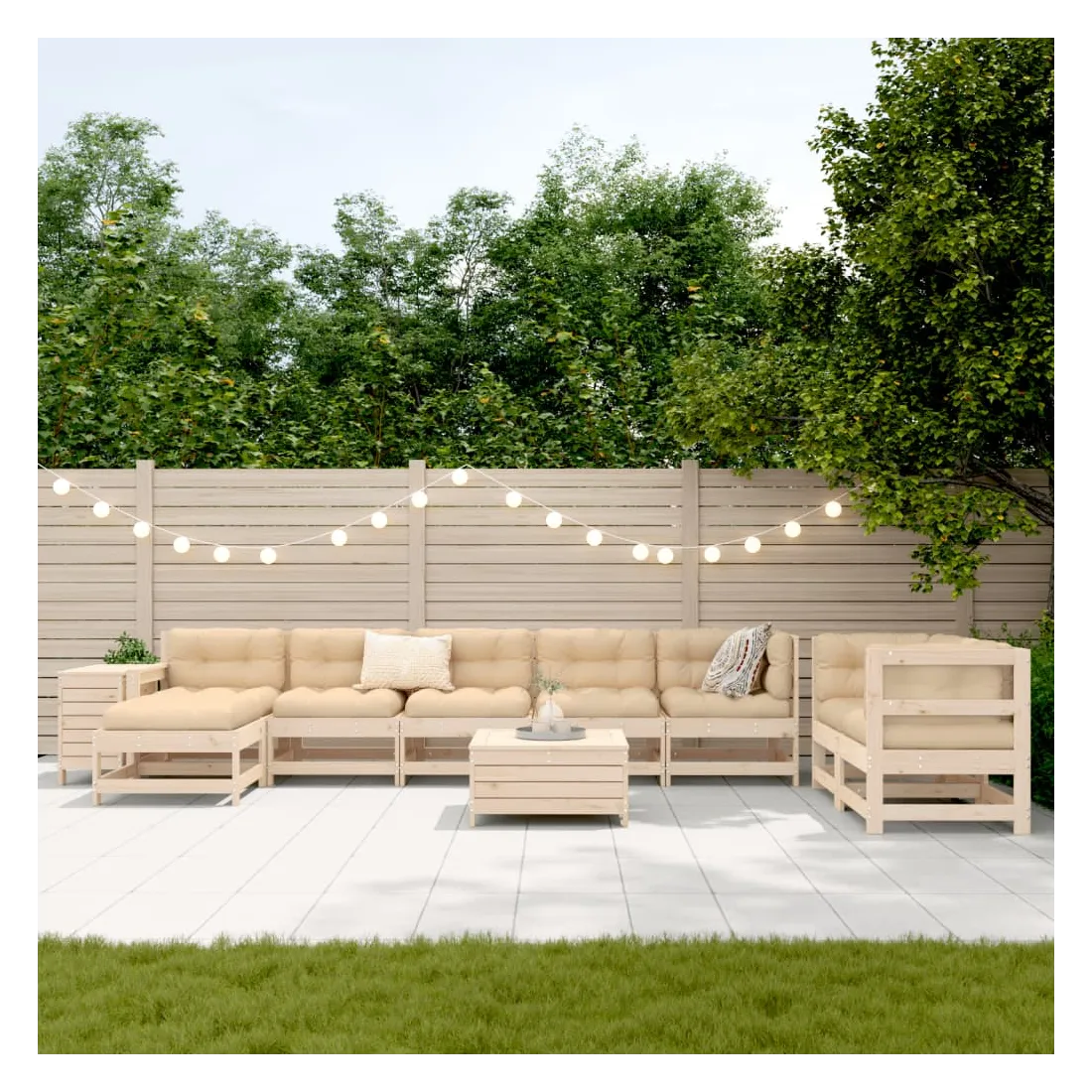Salon de jardin 10 pcs bois de pin massif