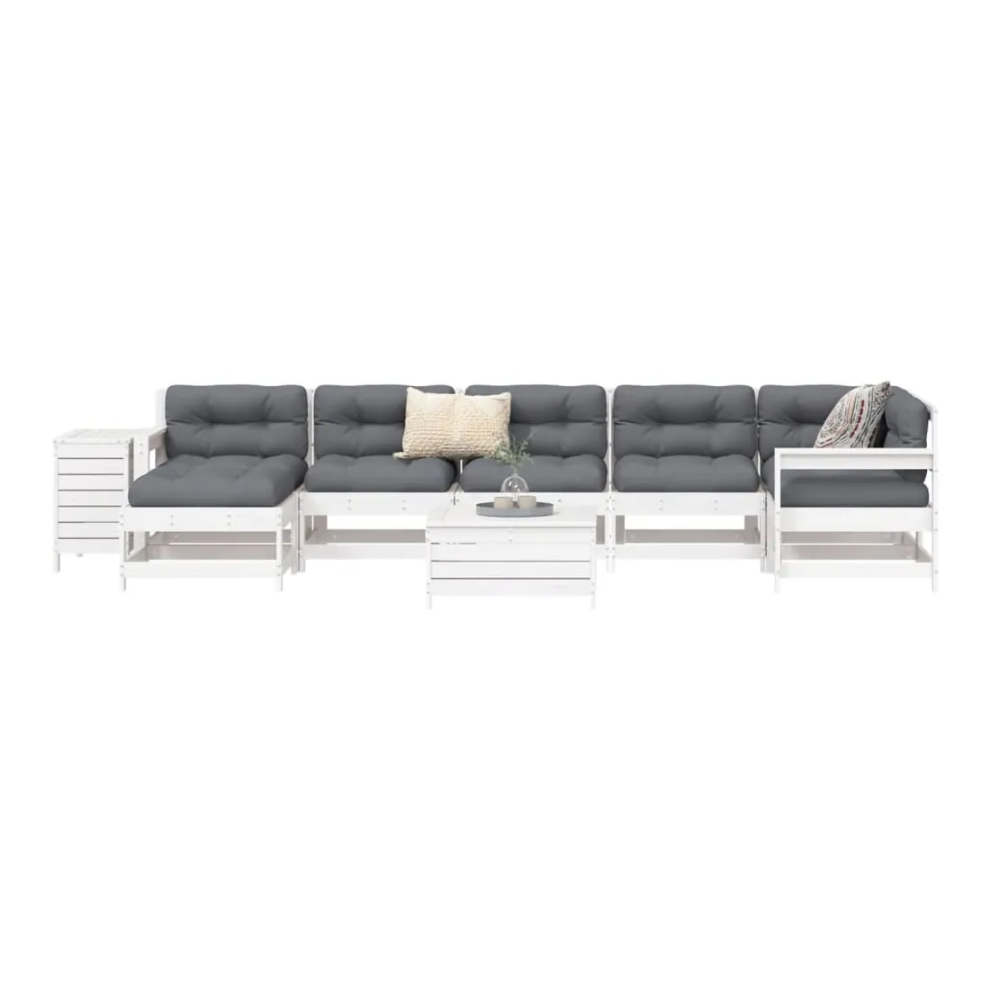 vidaXLCet ensemble de salon de jardin en bois avec un design à lattes sera un excellent complément à votre jardin, patio ou terrasse pour profiter d'un moment agréable avec votre famille ou vos amis. Matériau robuste et durable : le bois de pin massif est connu pour sa résistance et sa durabilité. Ses grains droits et ses nœuds distinctifs contribuent à son charme rustique. Bien ventilé et prévention de l'accumulation d'eau : la conception à lattes favorise une circulation optimale de l'air et empêche efficacement l'accumulation d'eau, assurant ainsi une assise sèche et confortable. Utilisation polyvalente : le repose-pied de jardin peut non seulement être utilisé pour s'asseoir ou se détendre, mais il peut également être utilisé comme table basse pour contenir vos boissons, votre nourriture et d'autres décorations. Table pratique : la table de jardin vous offre un endroit pratique pour atteindre facilement vos essentiels. Conception modulaire : cet ensemble de meubles d'extérieur a une conception modulaire, ce qui le rend complètement flexible et facile à déplacer, afin que vous puissiez créer un agencement de meubles d'extérieur personnalisé. Bon à savoir :Pour que vos meubles d'extérieur restent beaux, nous vous recommandons de les protéger avec une housse imperméable.
